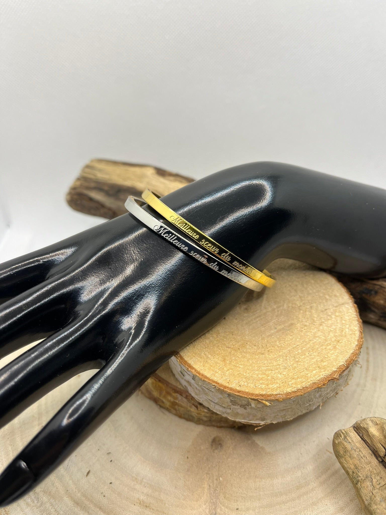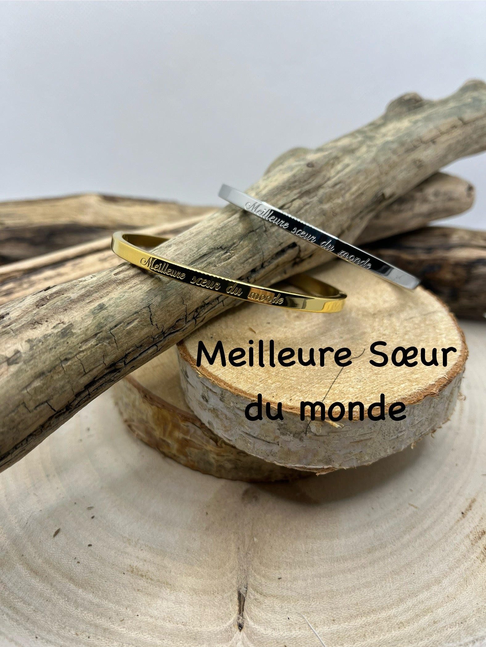Bracelet Jonc à méssage (Meilleure Soeur du Monde) - Acier Inoxydable doré ou en Argenté