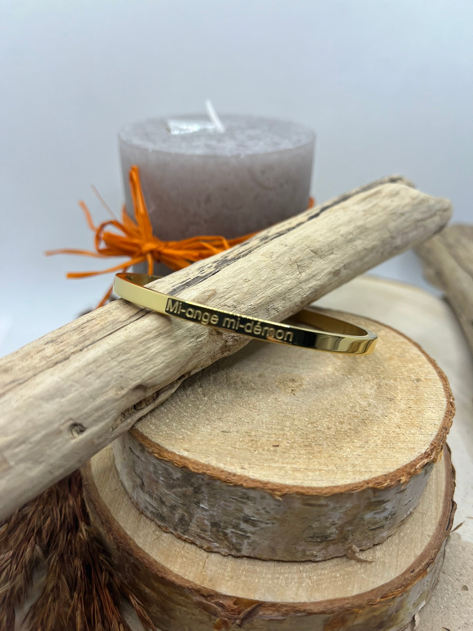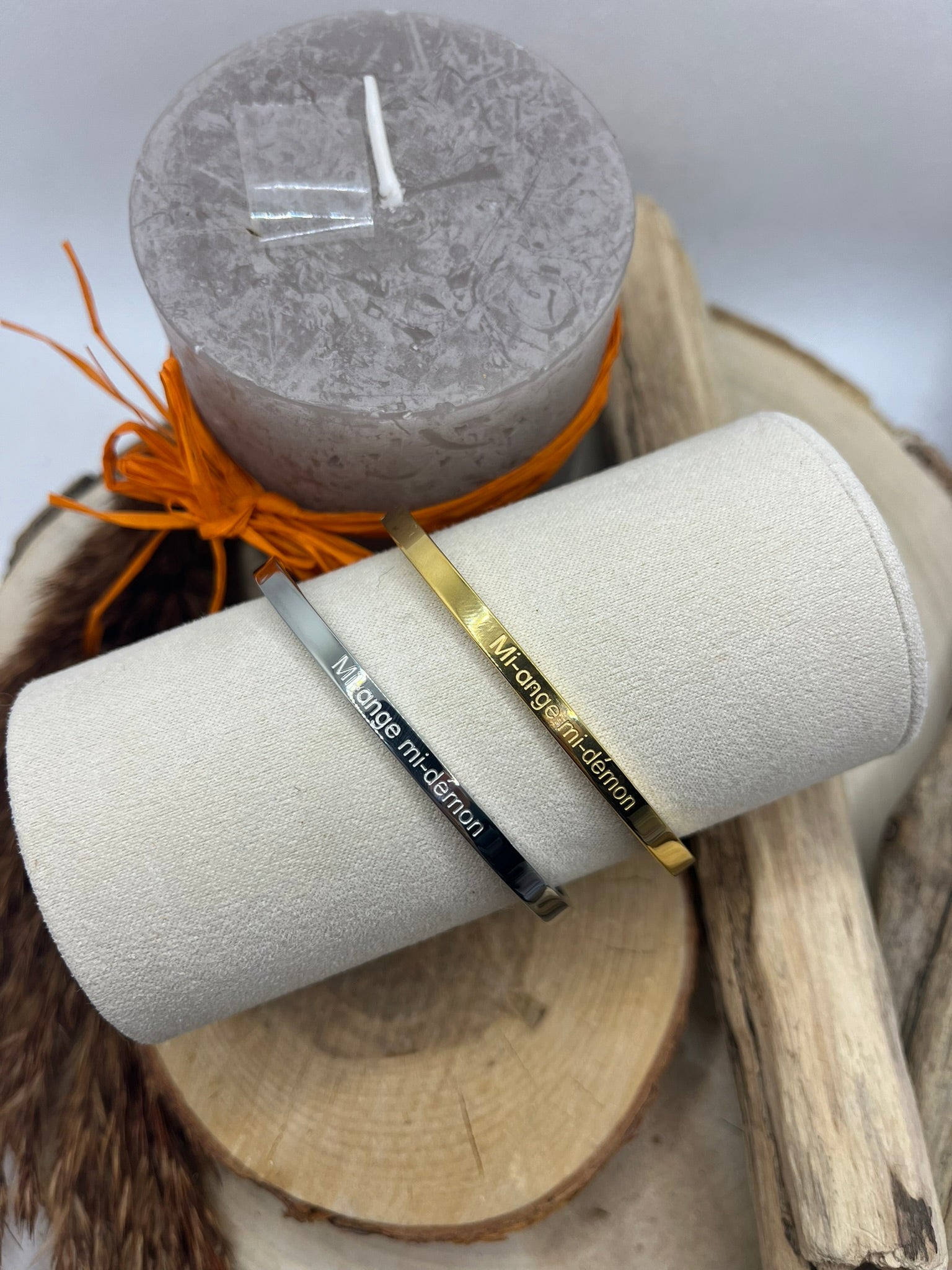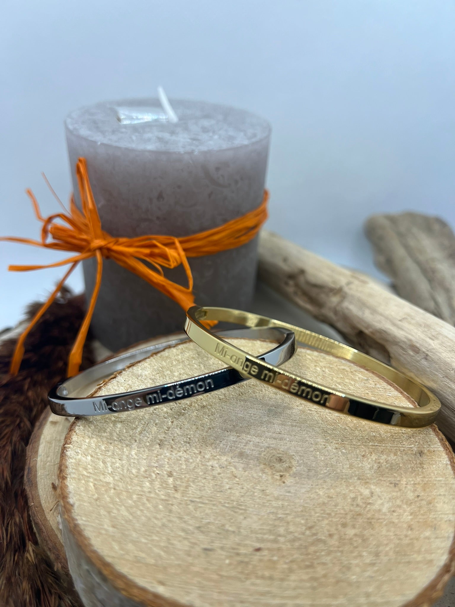 Bracelet Jonc à message ( Mi-ange Mi-démon ) Acier inoxydable Doré ou en Argenté