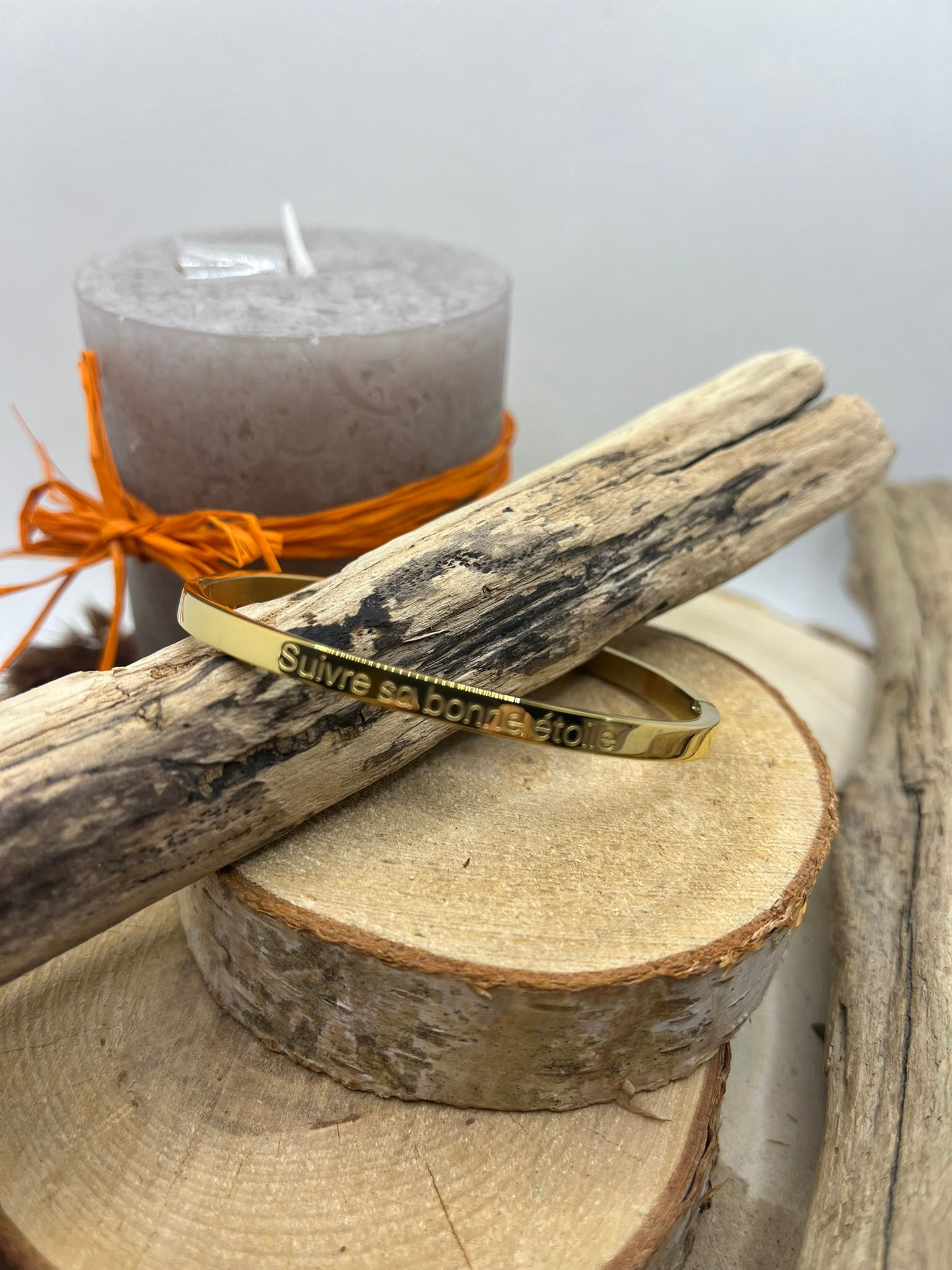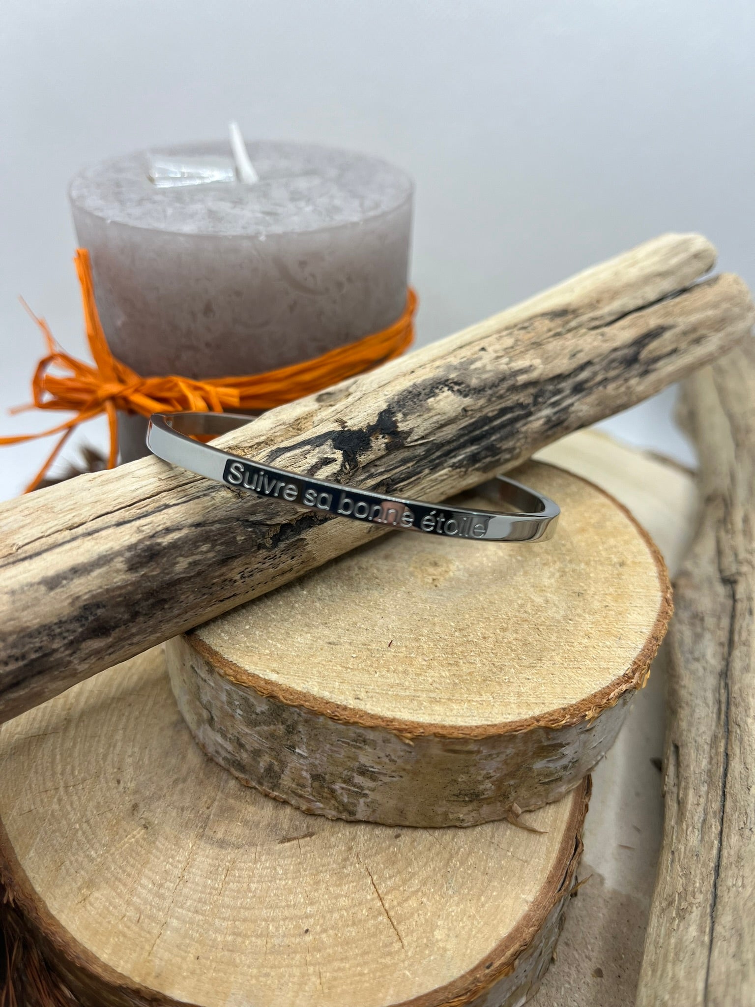 Bracelet Jonc à message ( Suivre ma bonne étoile ) Acier inoxydable doré ou en argenté