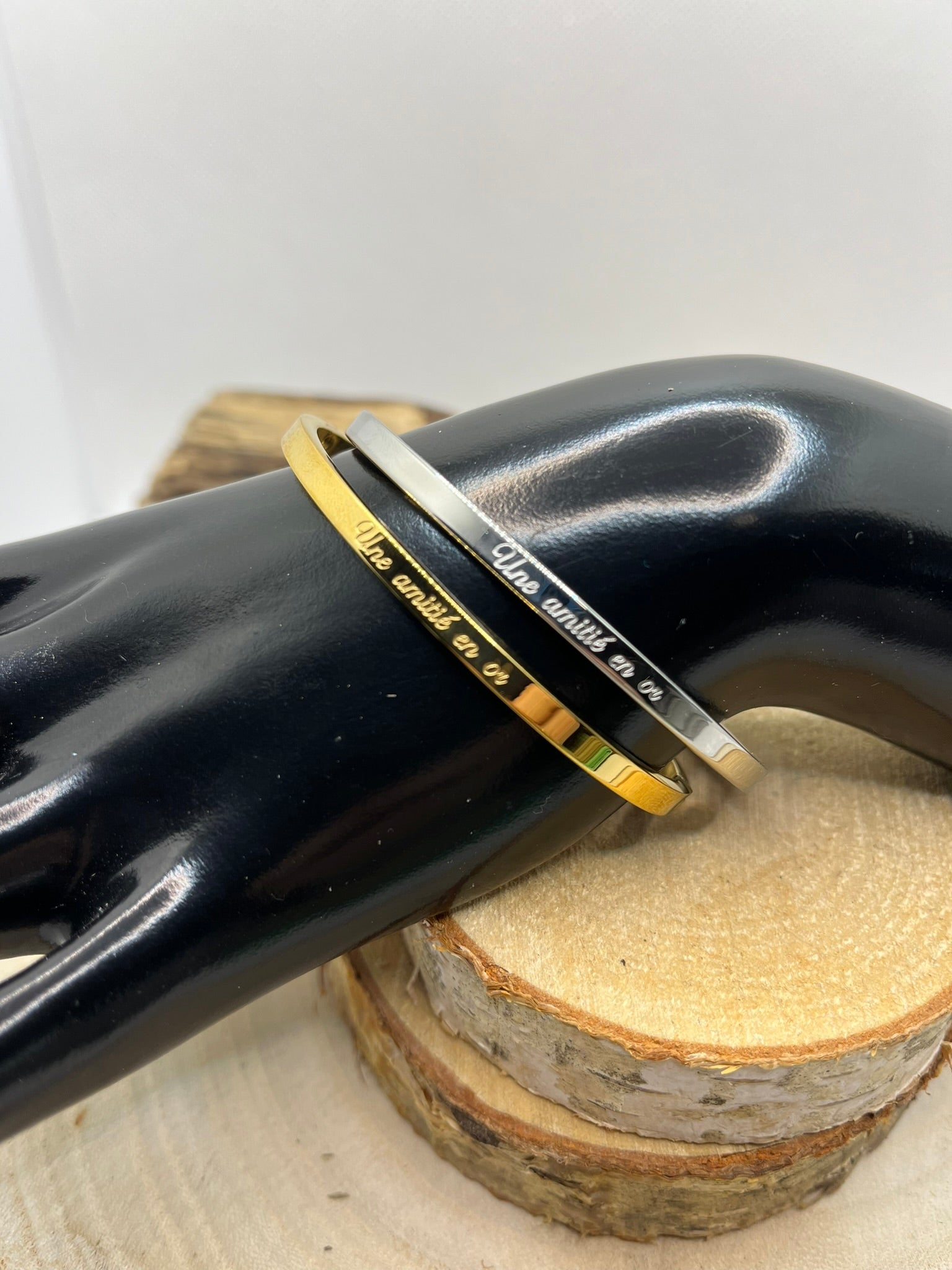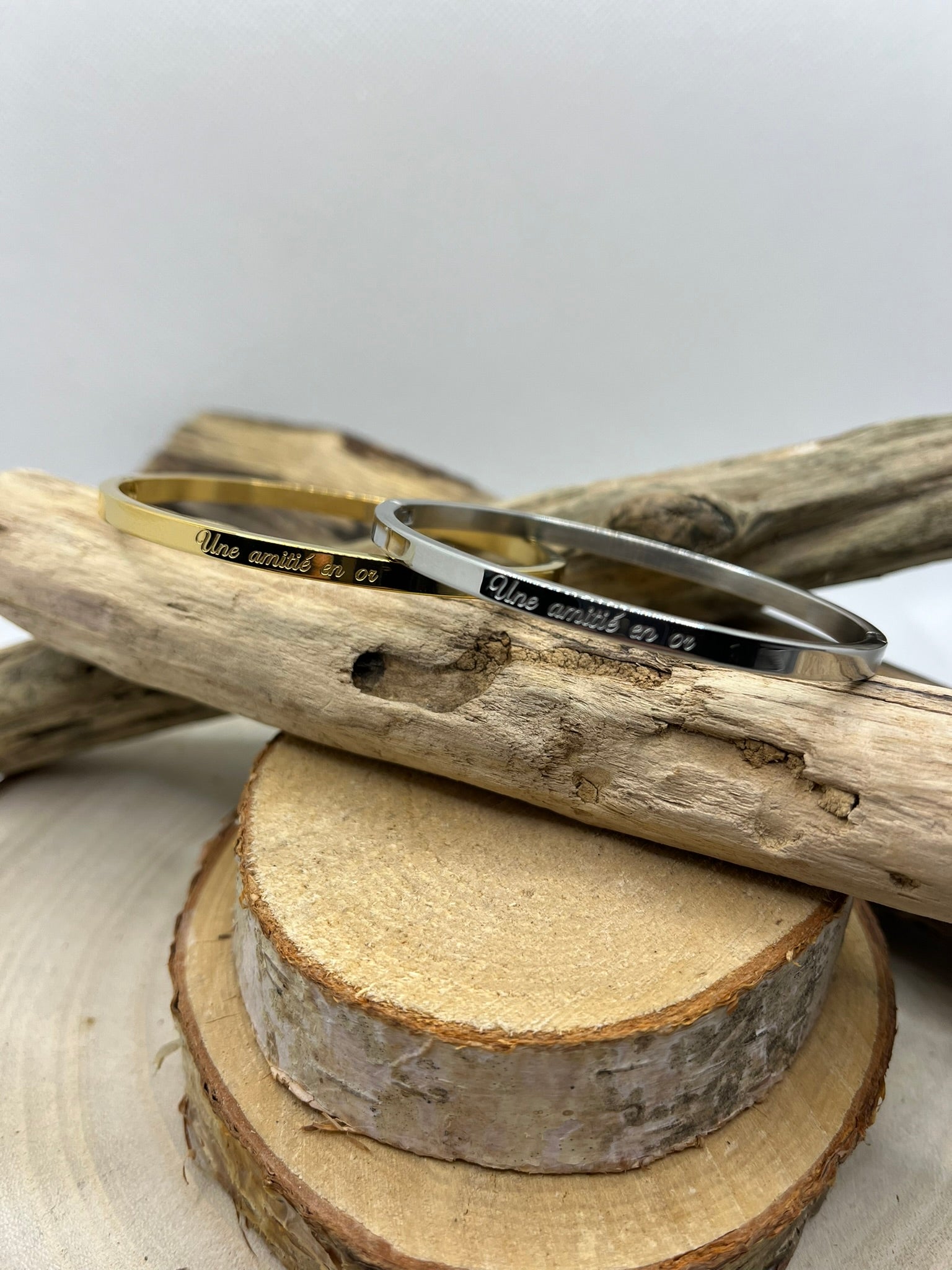 Bracelet Jonc à Message (Une Amitié en or) - Acier inoxydable Argenté ou en doré