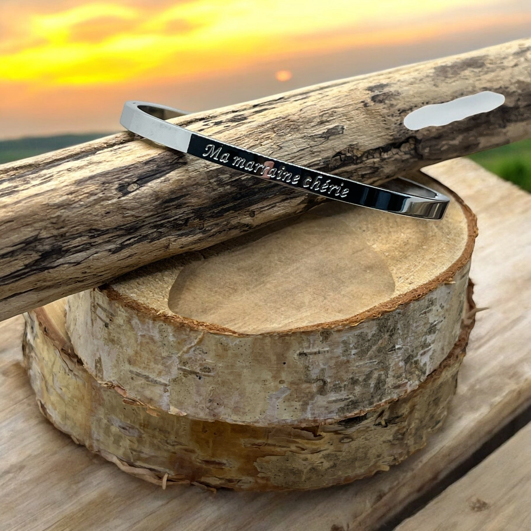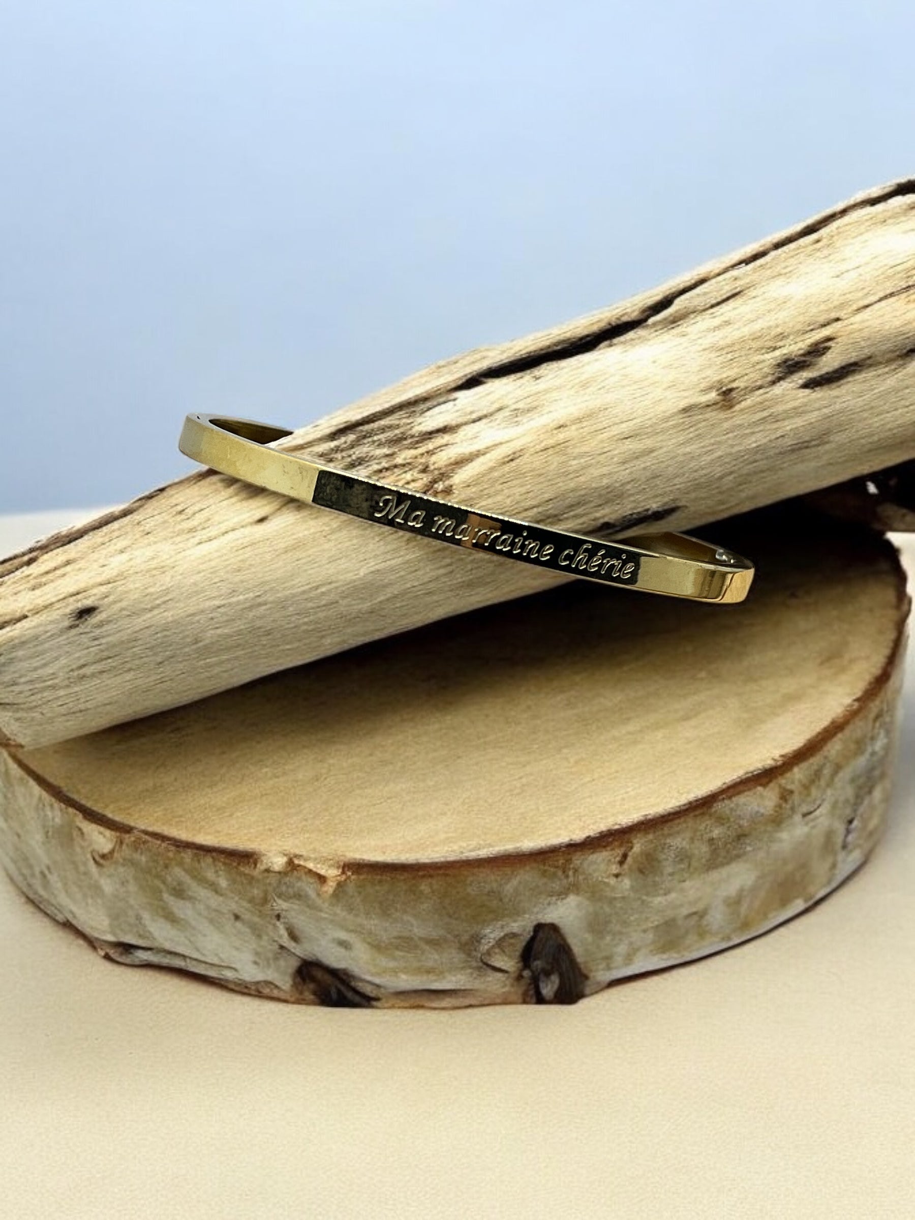 Bracelet Jonc message ( Ma marraine chérie ) - Acier Inoxydable Doré ou en Argenté