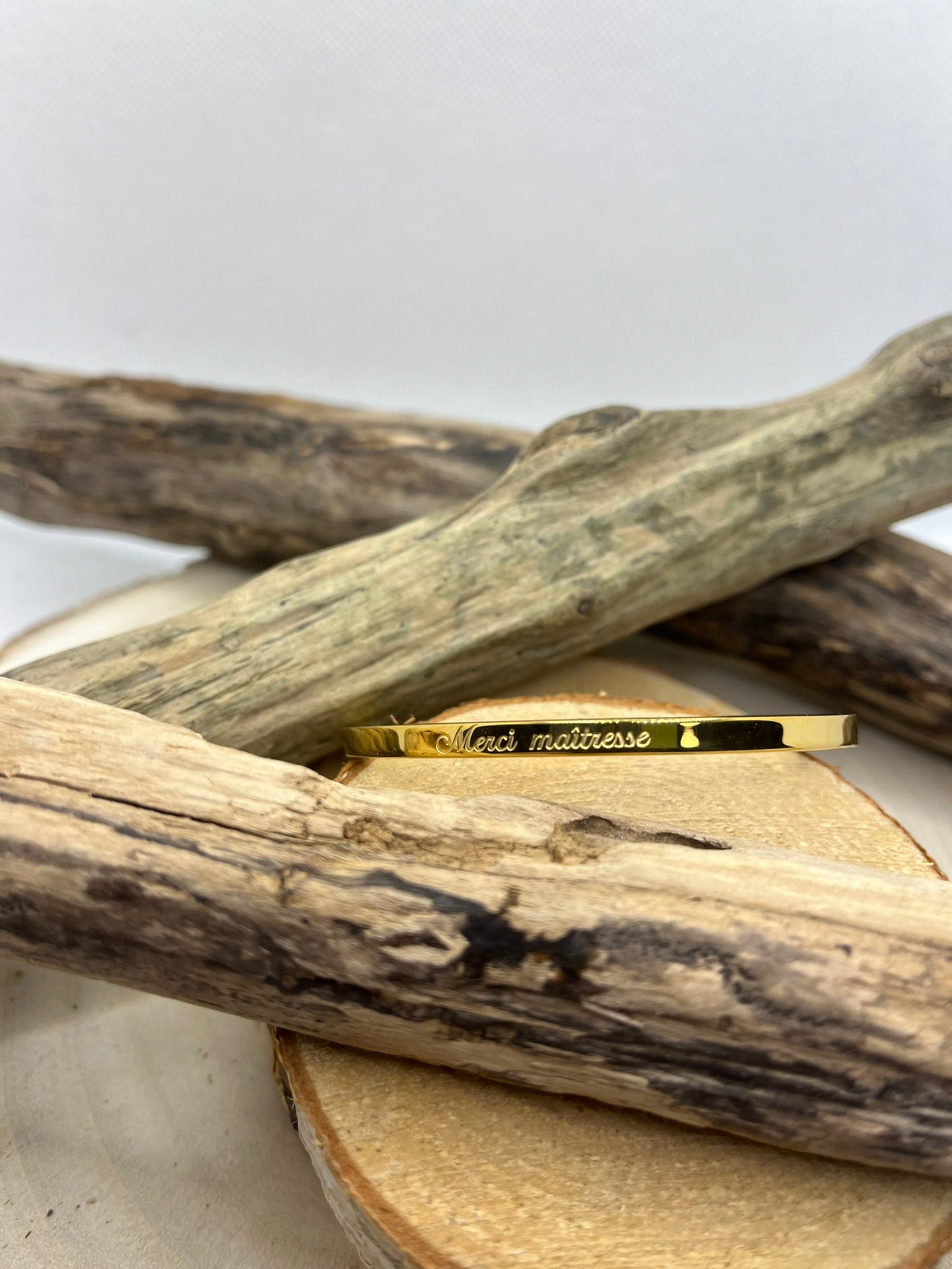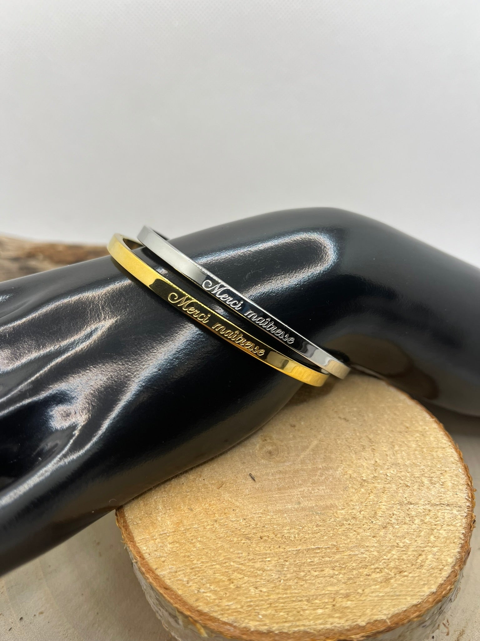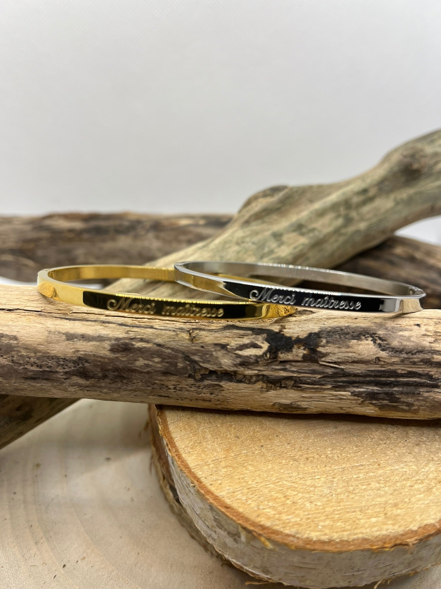 Bracelet Jonc Message ( Merci Maitresse ) - Acier Inoxydable Doré ou en Argenté