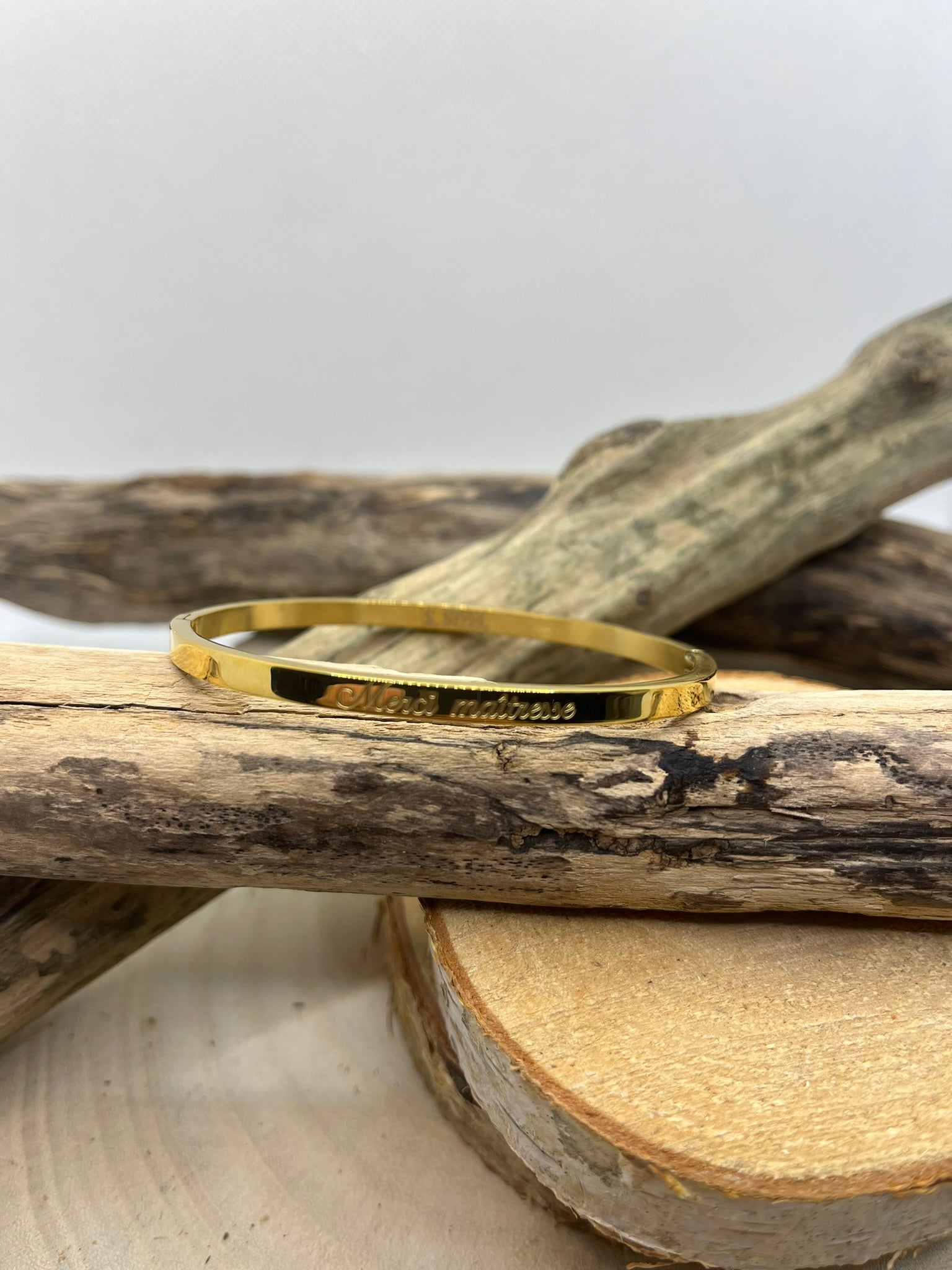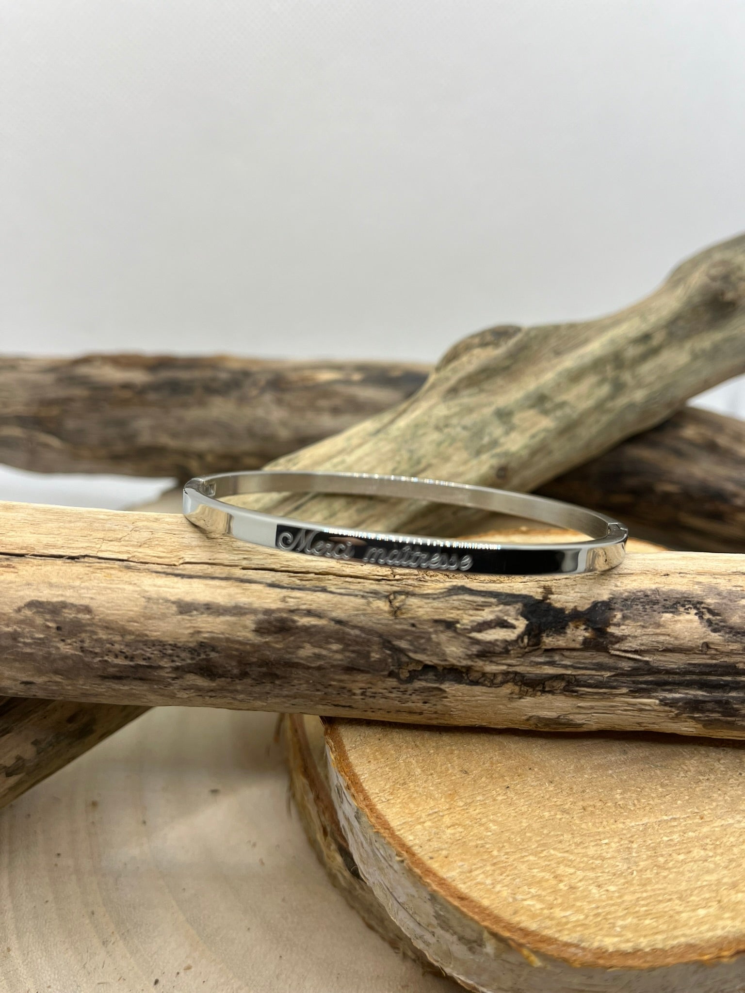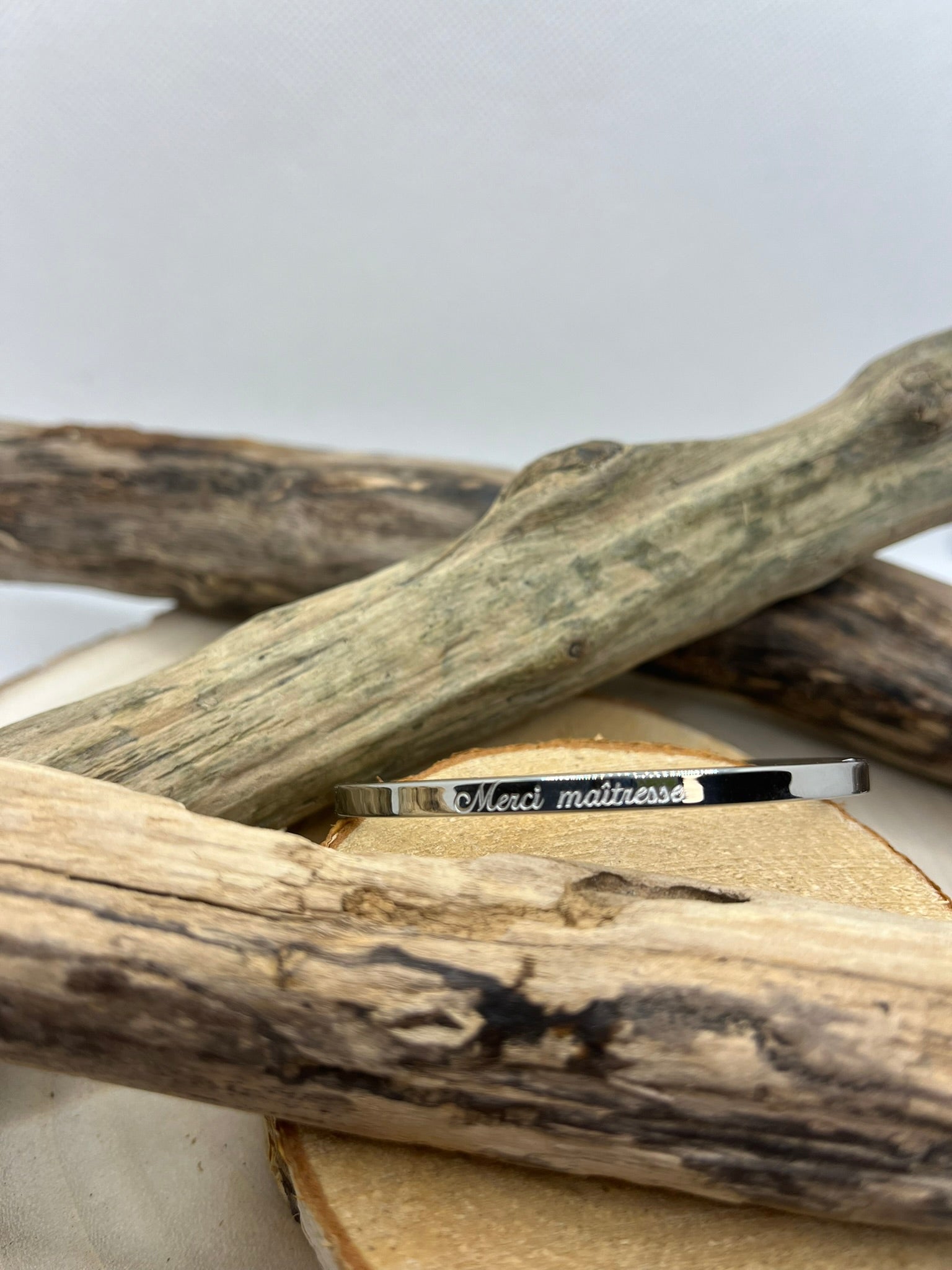 Bracelet Jonc Message ( Merci Maitresse ) - Acier Inoxydable Doré ou en Argenté