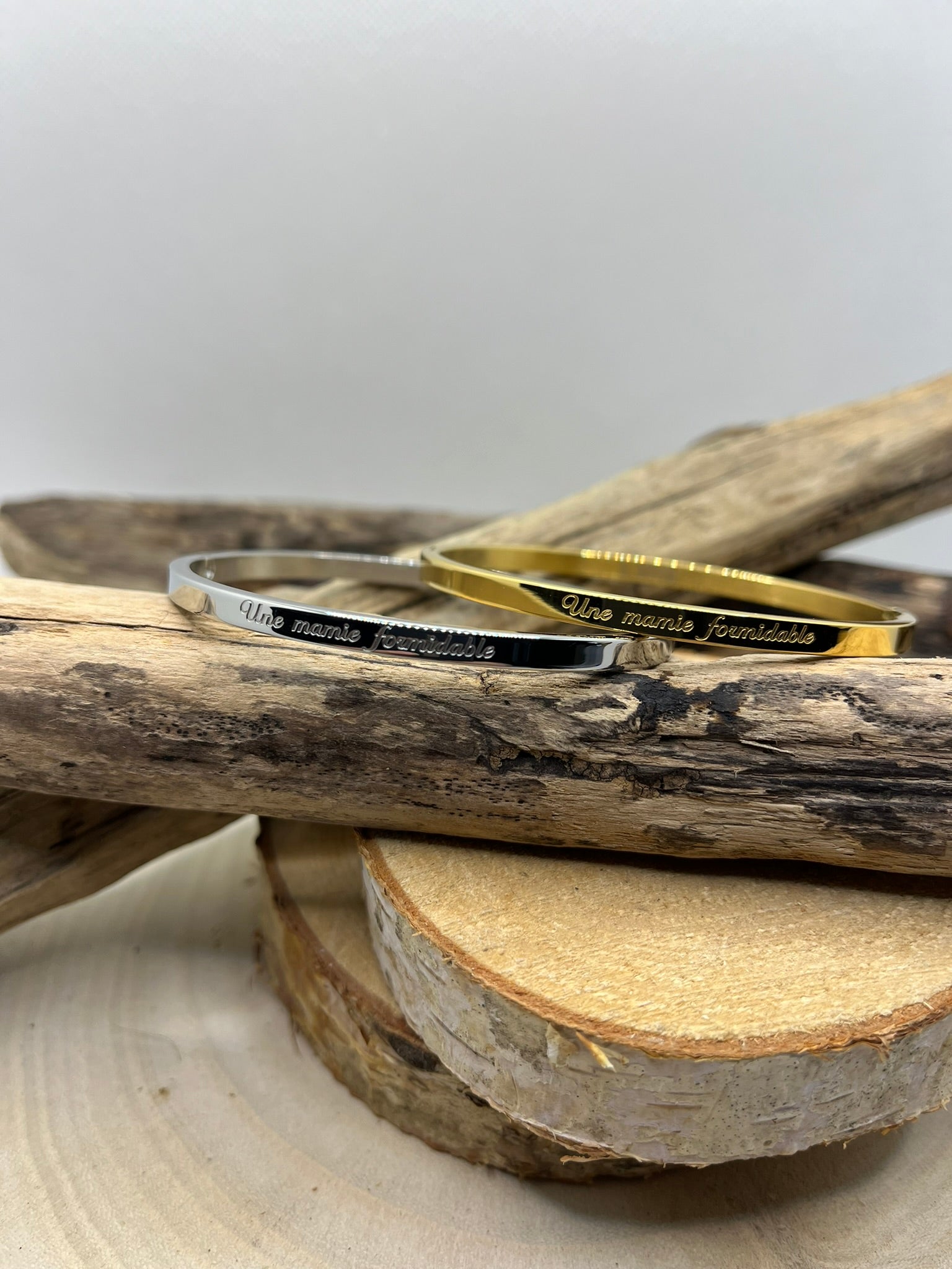 Bracelet Jonc - Message personnalisé ( Une mamie formidable ) - Acier inoxydable Doré ou en Argenté