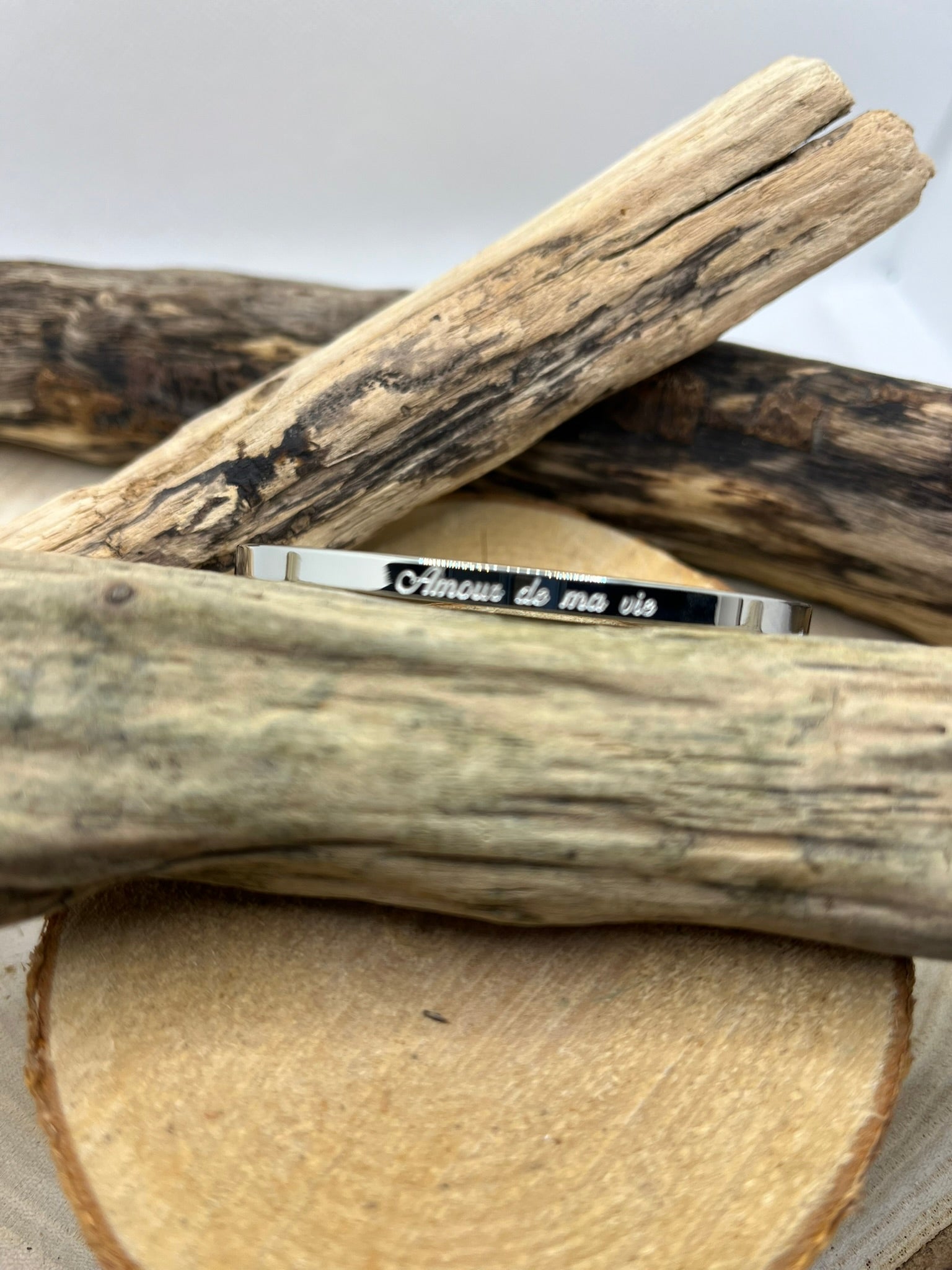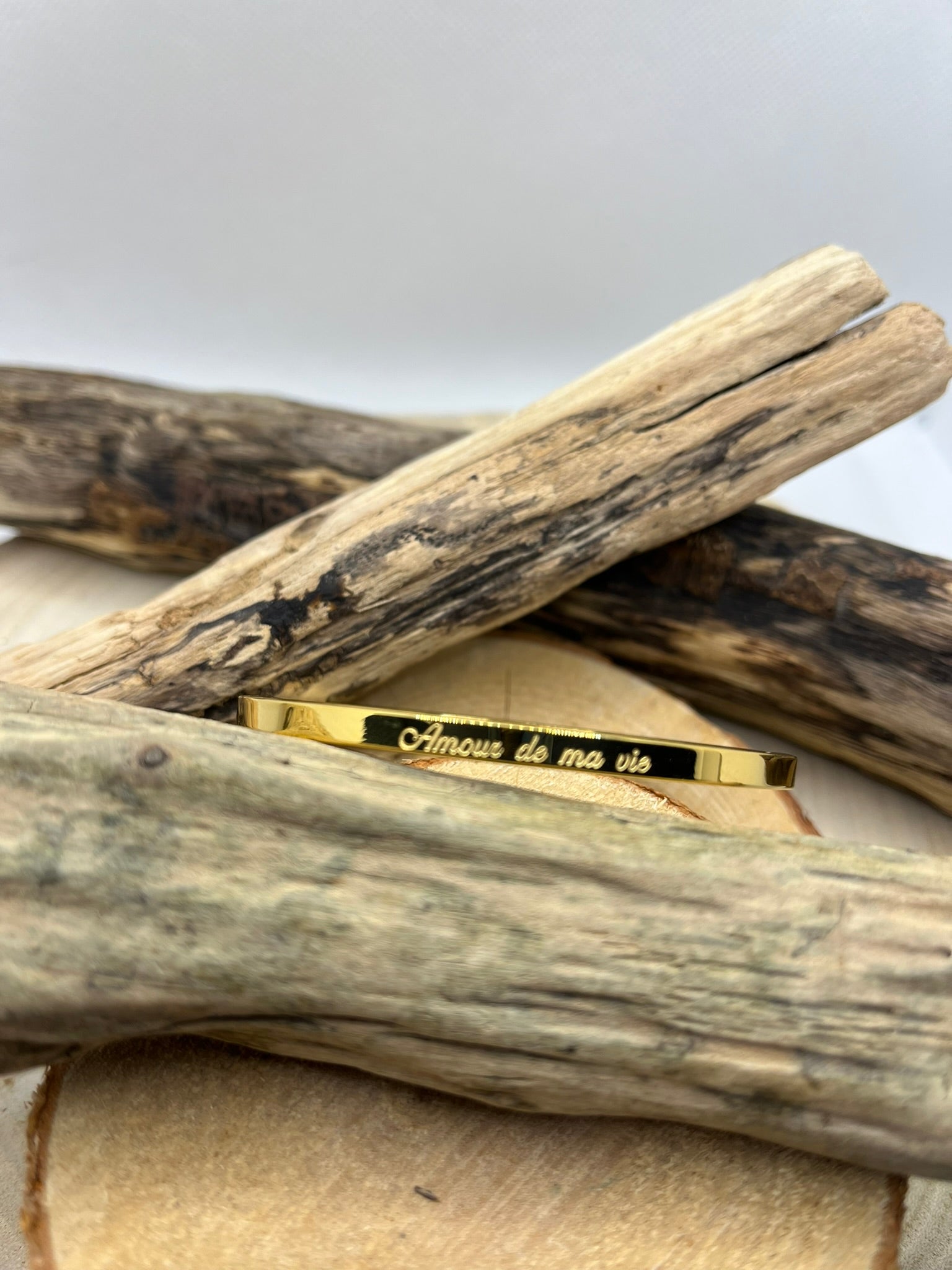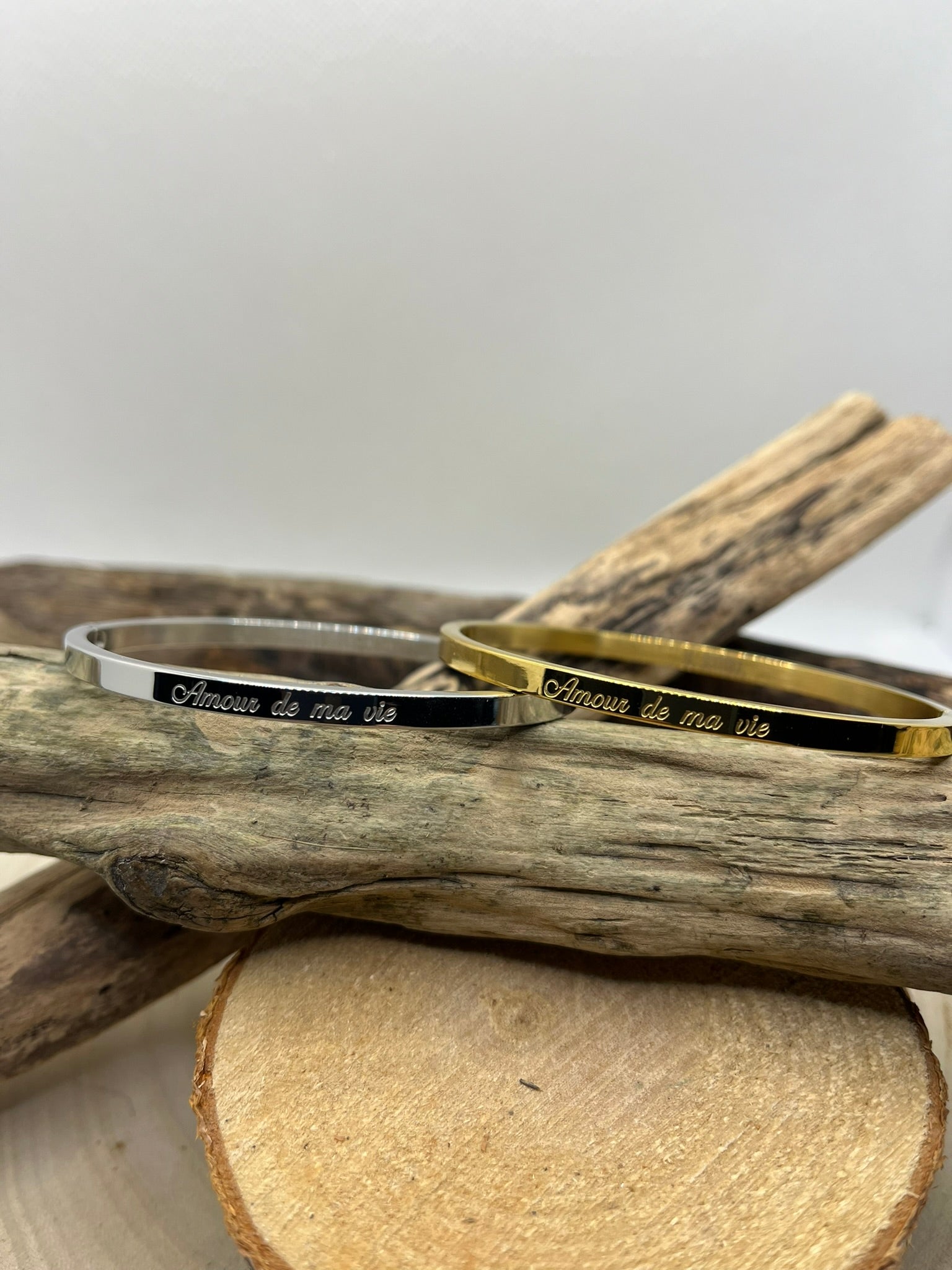 Bracelet Jonc Message personnalisée ( Amour de ma vie ) - Acier Inoxydable Doré en Argenté