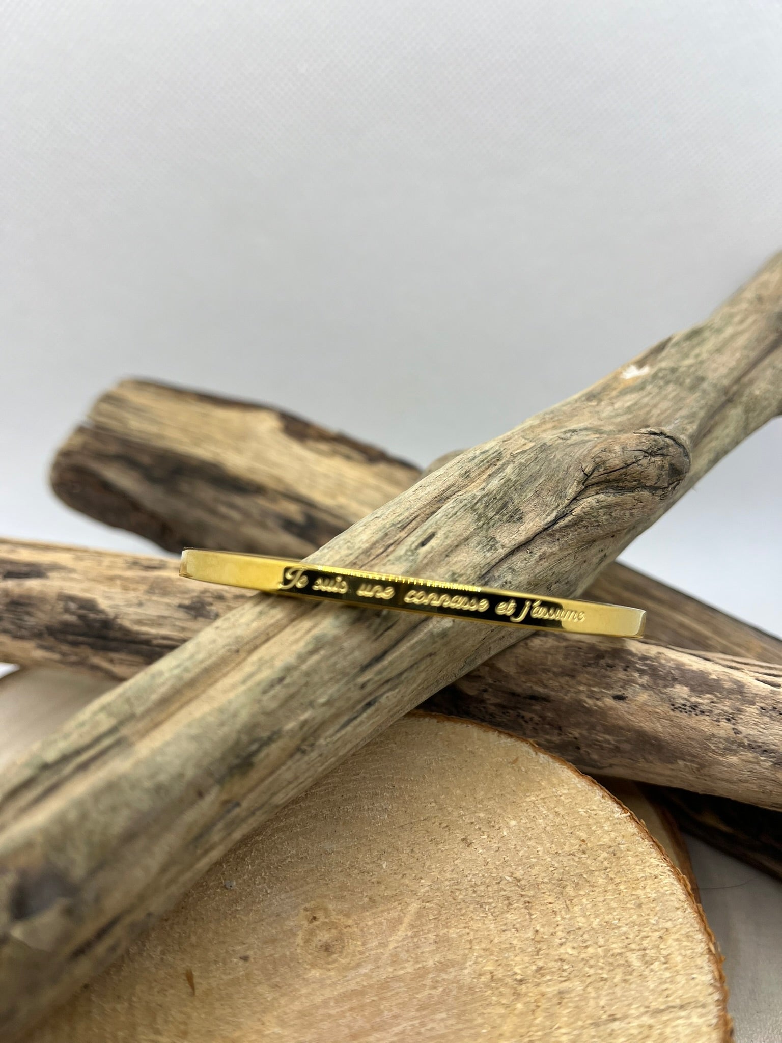 Ce bracelet en acier inoxydable est une déclaration de confiance et d'assurance de soi. Avec le message "Je suis une connasse et j'assume", il rappelle aux femmes de ne jamais avoir honte de qui elles sont. Disponible en doré ou en argent, ce bracelet apporte une touche de style audacieuse et inspirante à chaque tenue.