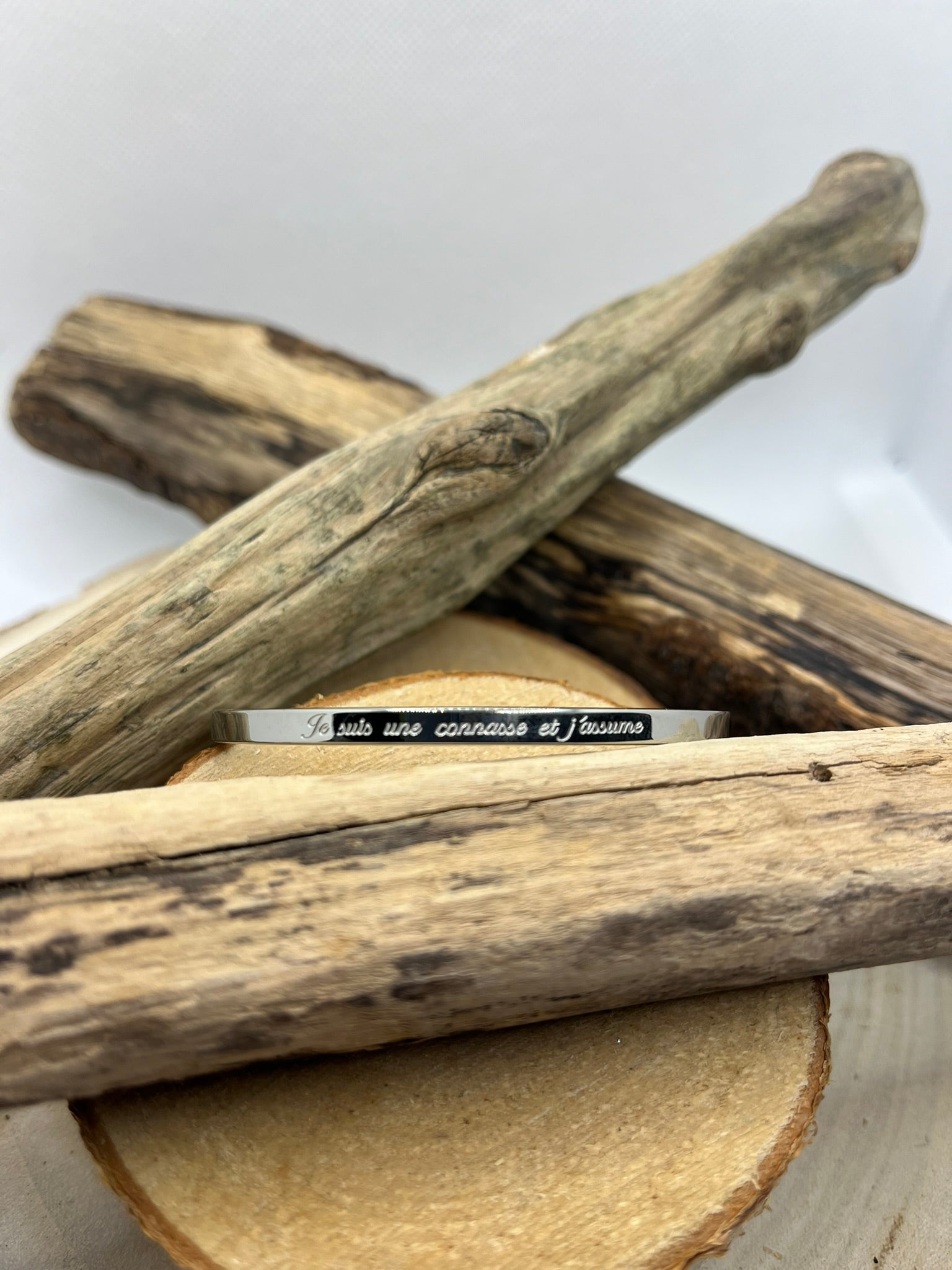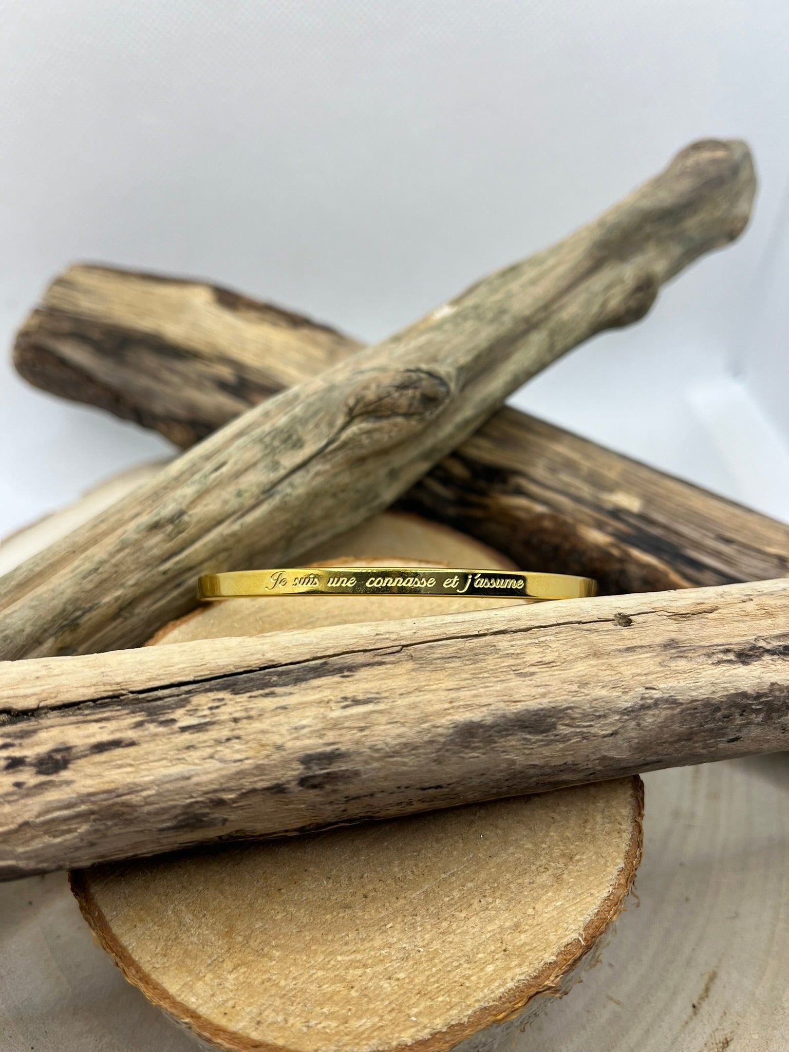 Bracelet message Femme (Je suis une connasse et j'assume) - Accier inoxydable en doré ou en argent