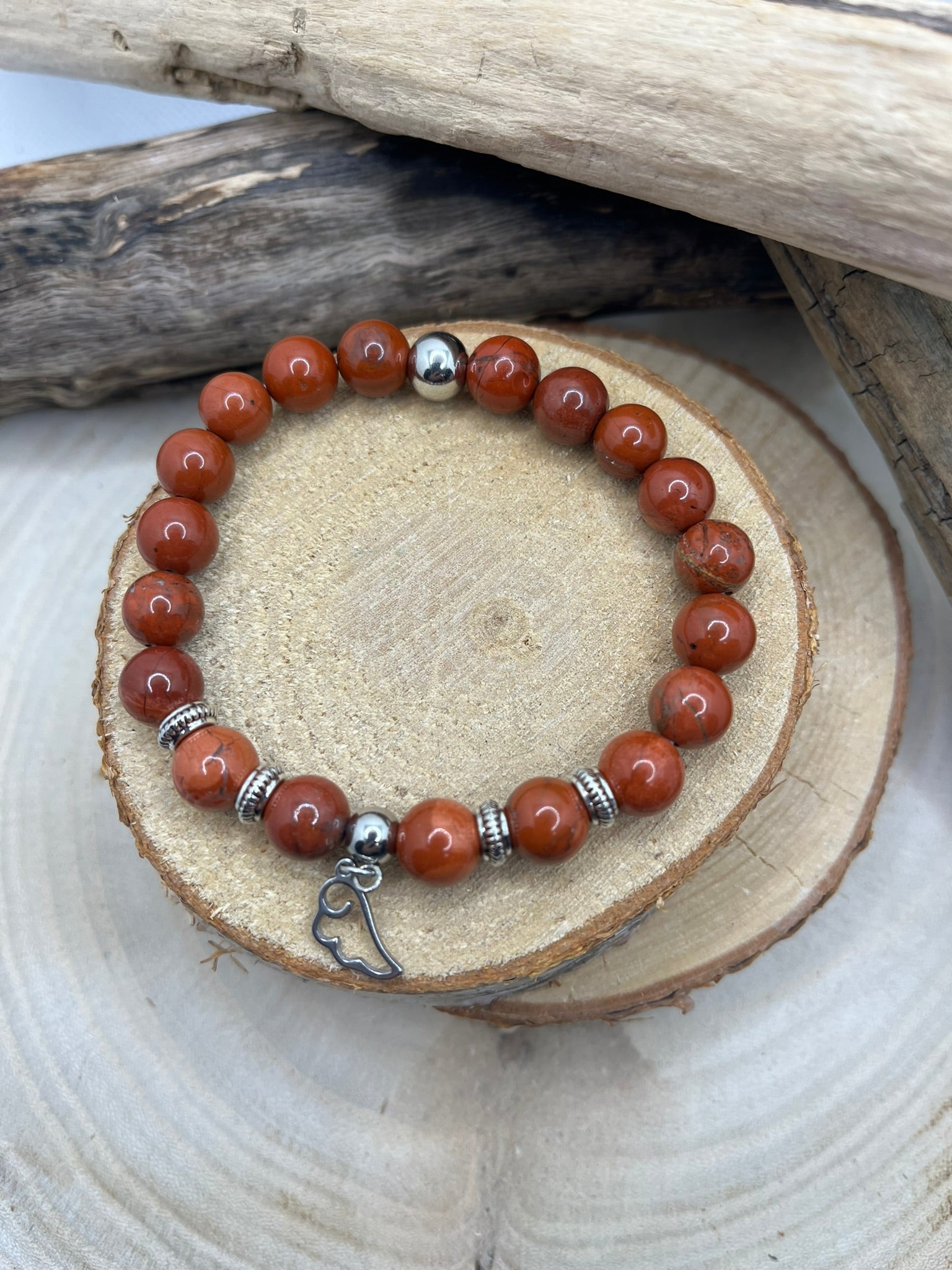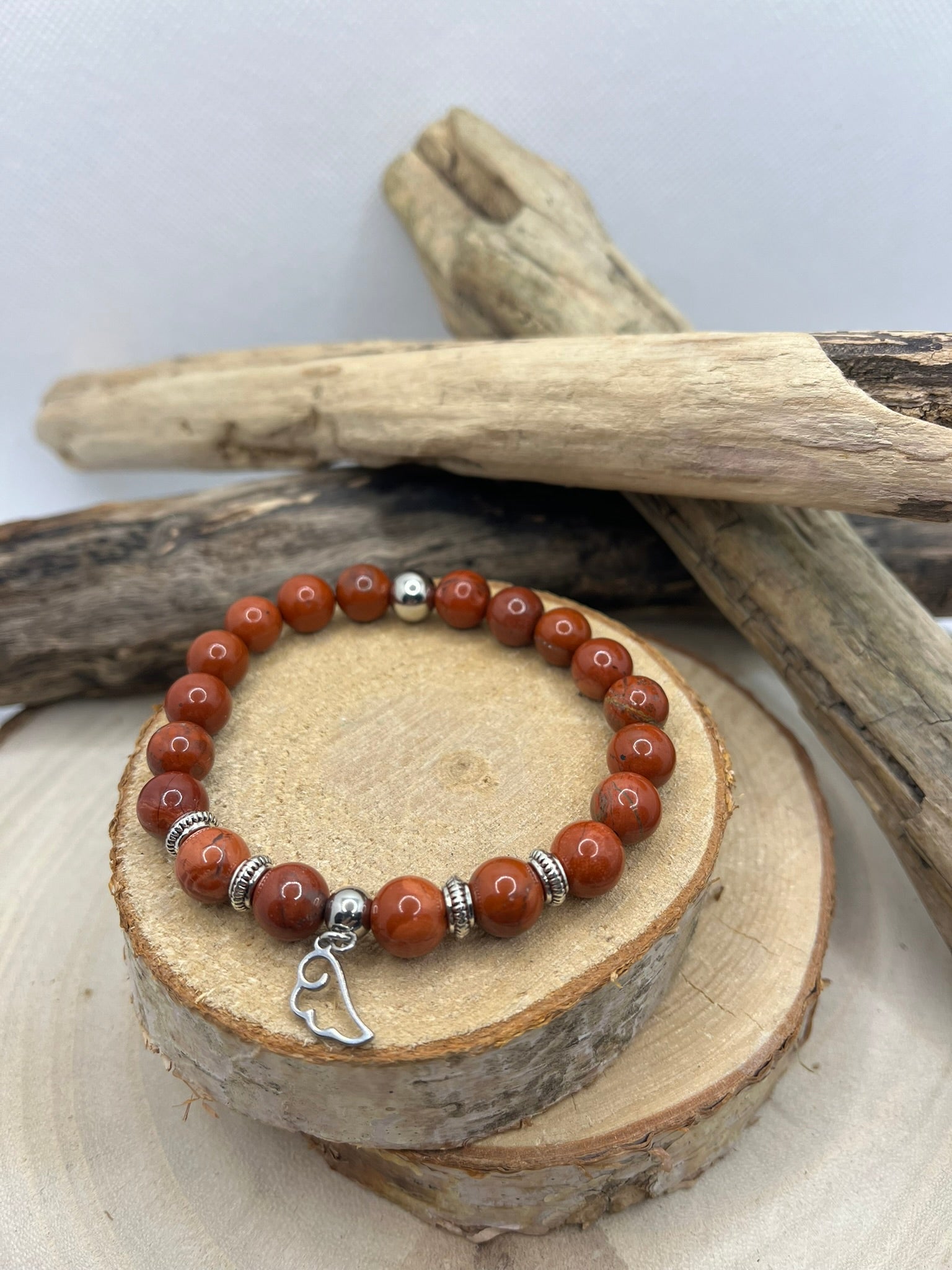 Bracelet Stimulant - Pierre naturelle Jaspe Rouge Orné d'un pendentif une aile d'ange - Fait main