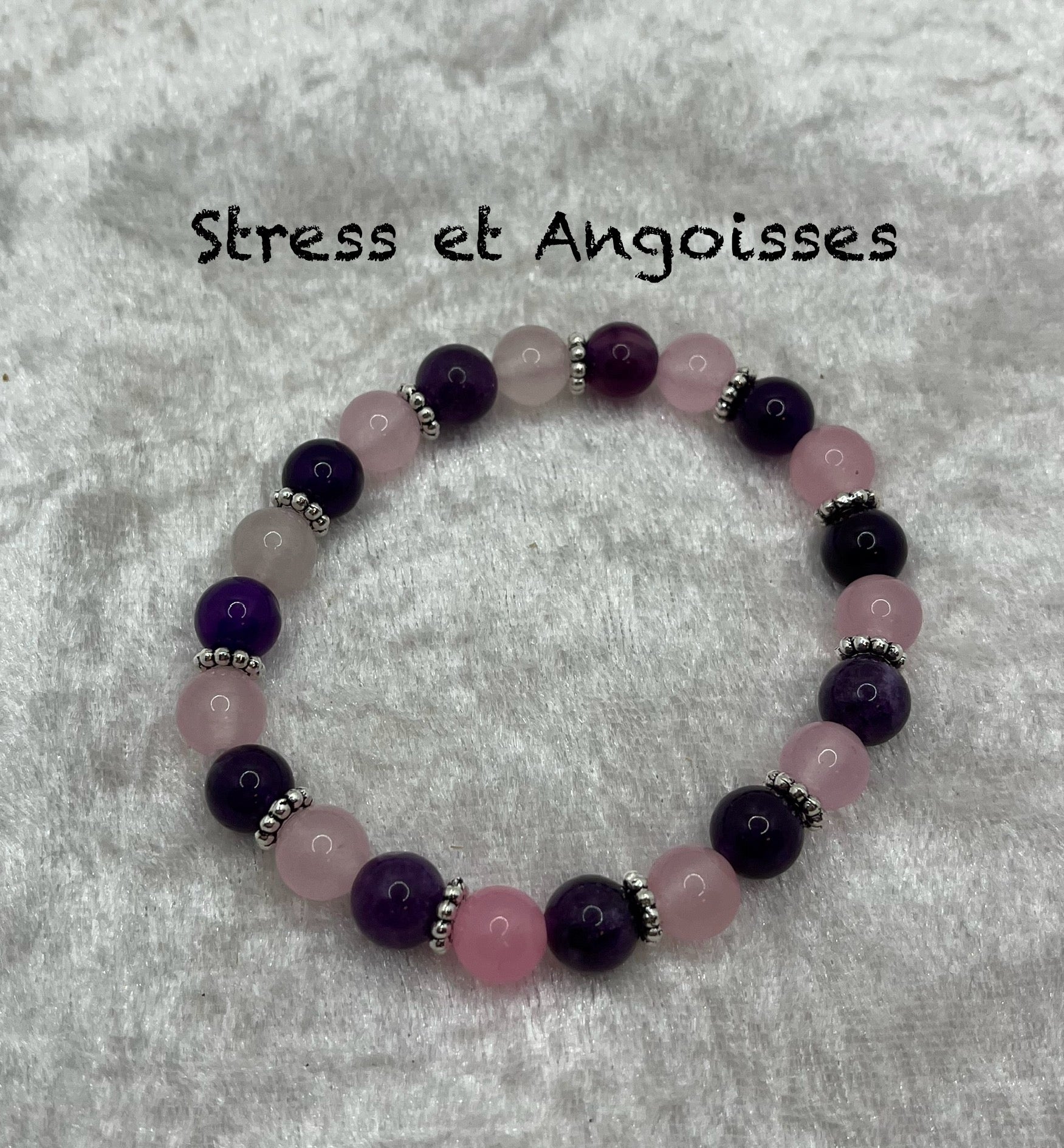 Bracelet Stress et Angoisse en Pierre Naturelle Quartz Rose et Améthyste - Fait Main