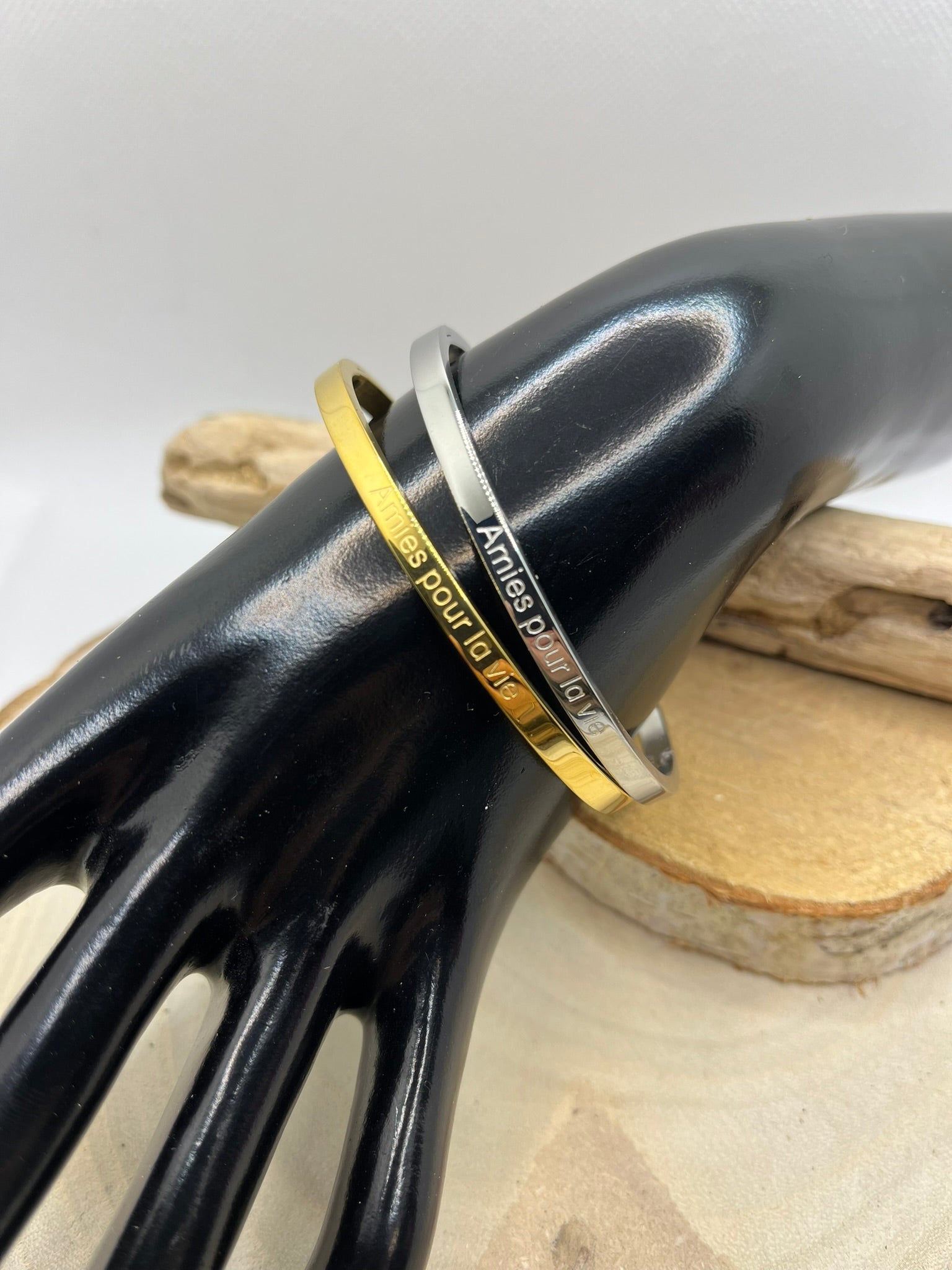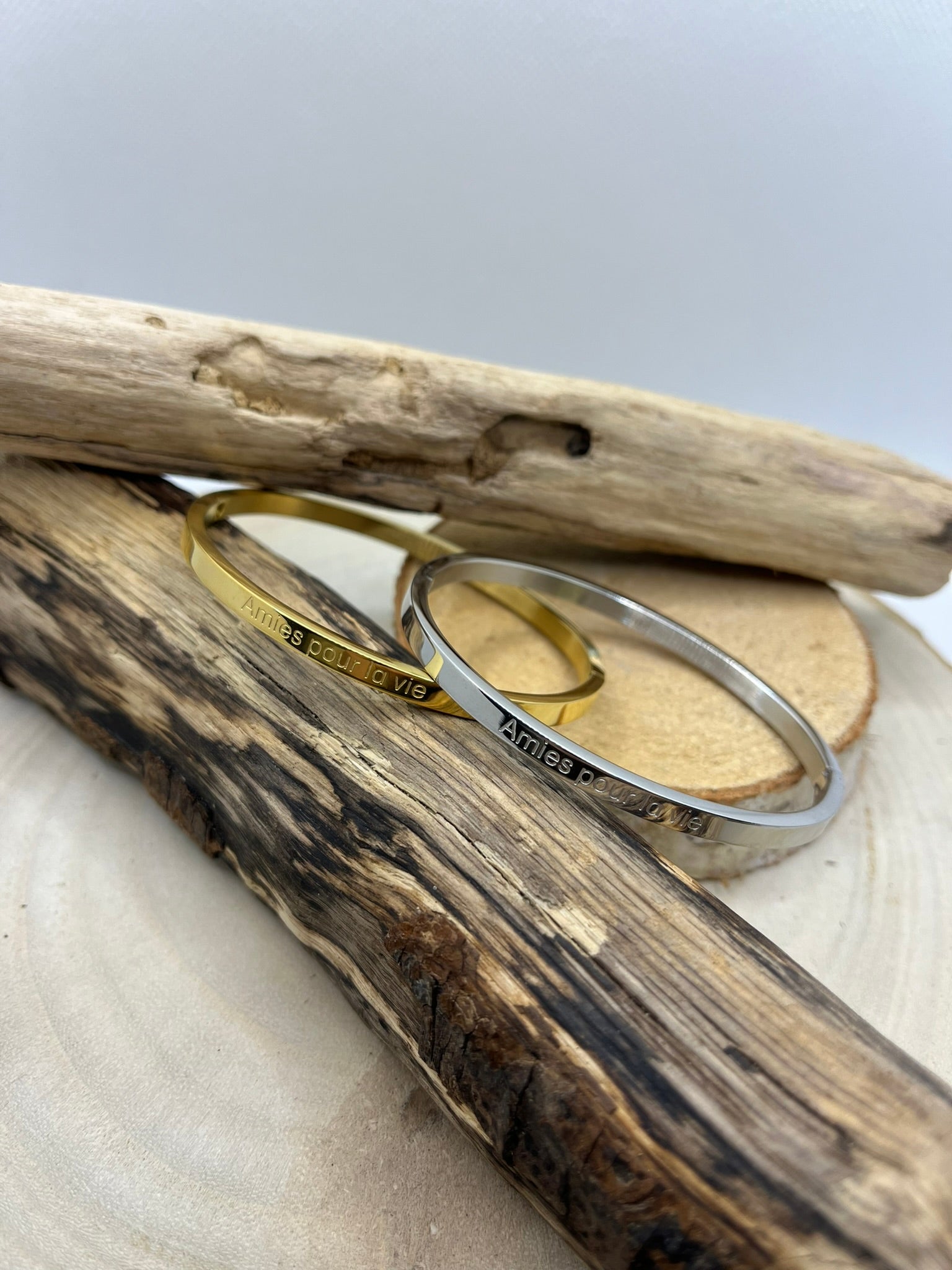 Bracelets Jonc à Message ( Amie pour la vie ) - Acier inoxydable en doré ou en argenté