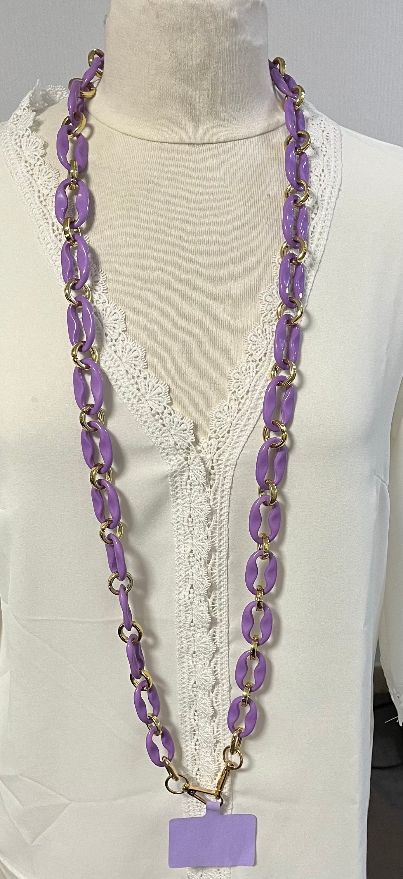 Chaine de Téléphone Portable Violet et Doré - Bijoux mode Acrylique - Tour de cou Téléphone
