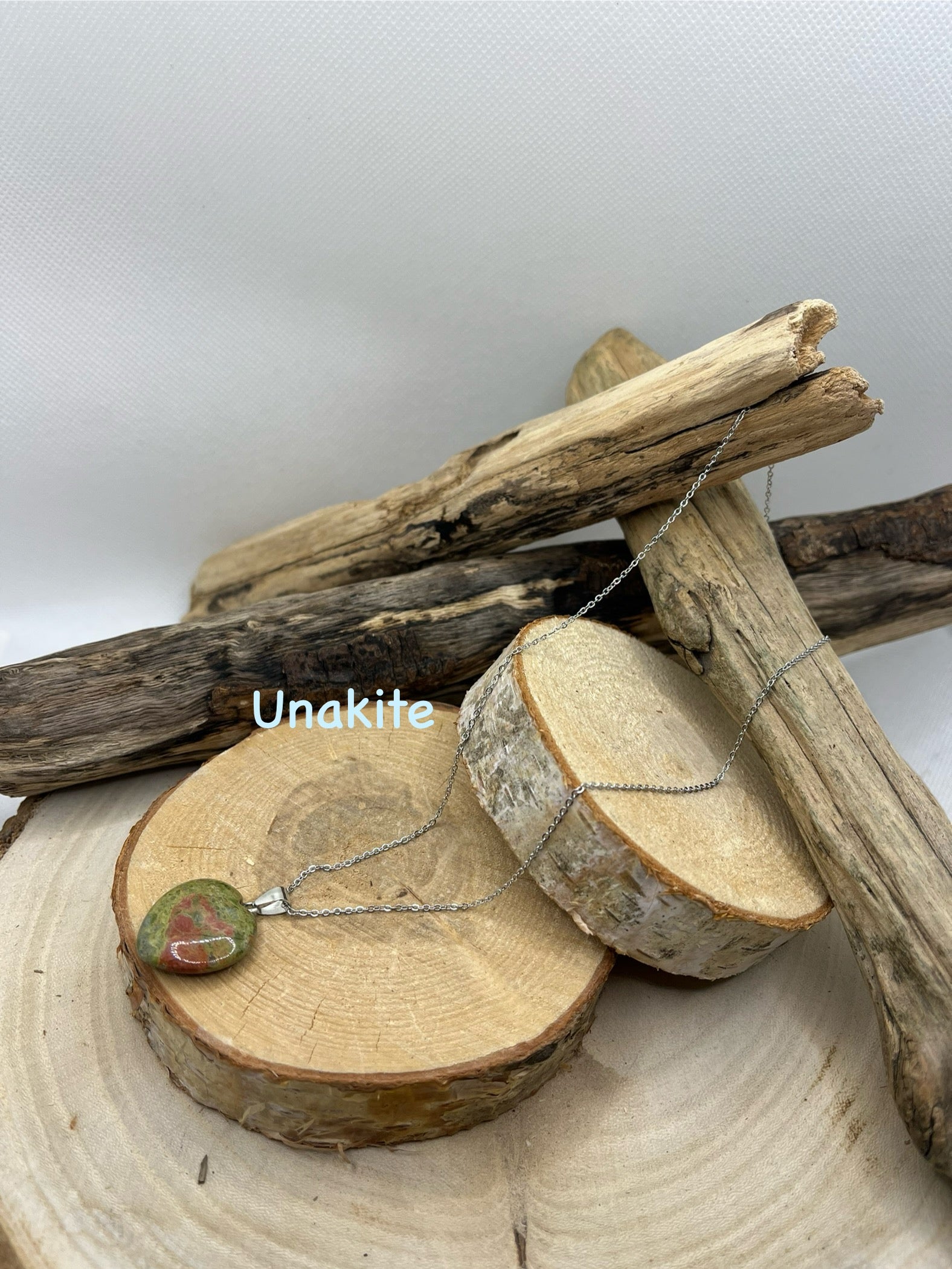 Sublimez votre look avec ce collier chaine fine argentée et son pendentif cœur en Unakite, une pierre qui équilibre les émotions pour relativiser et prendre du recul. Laissez-vous emporter par cette belle et unique pièce qui vous aidera à dénouer certains blocages liés au passé. Une pièce à la fois unique et puissante.