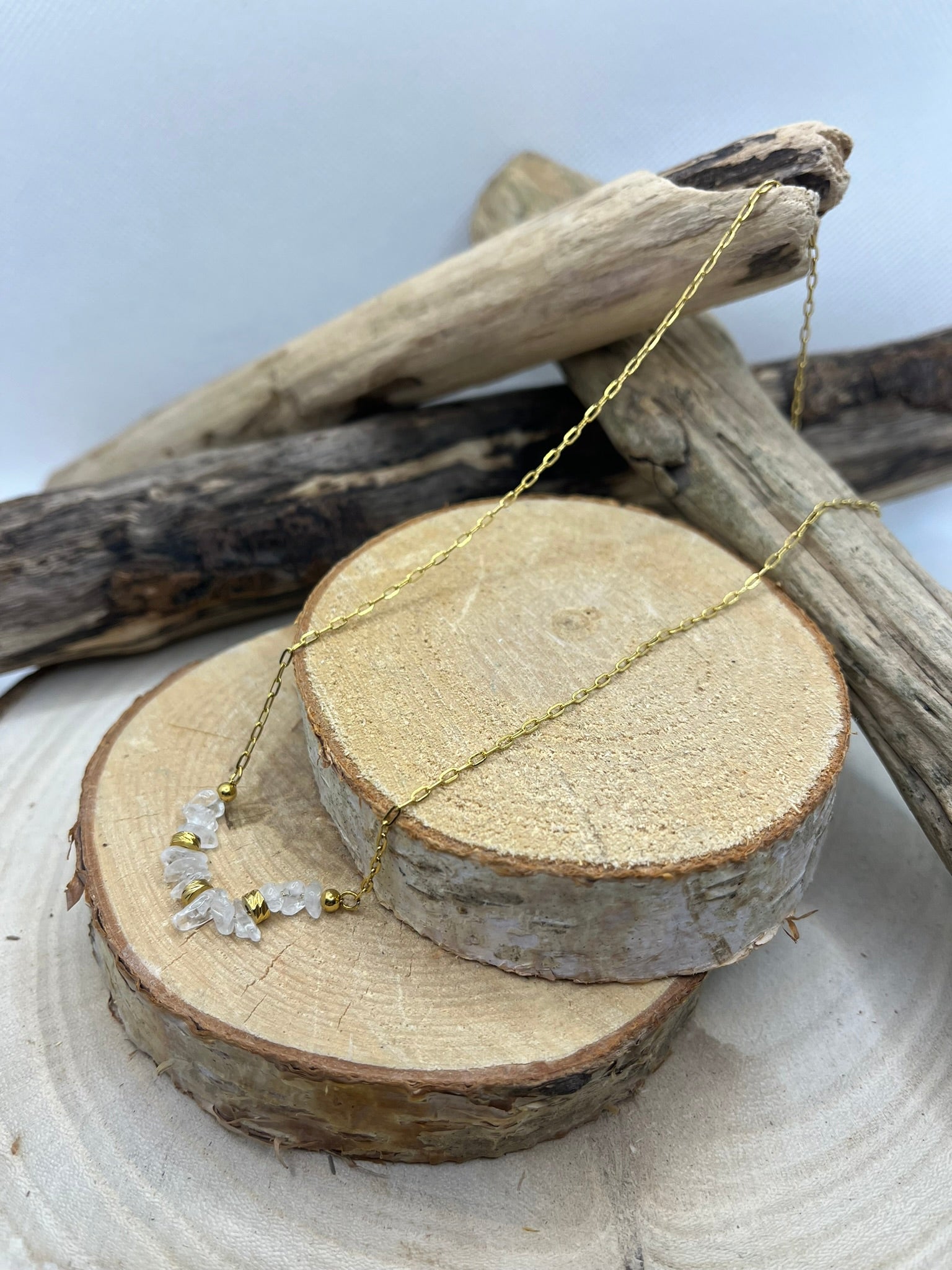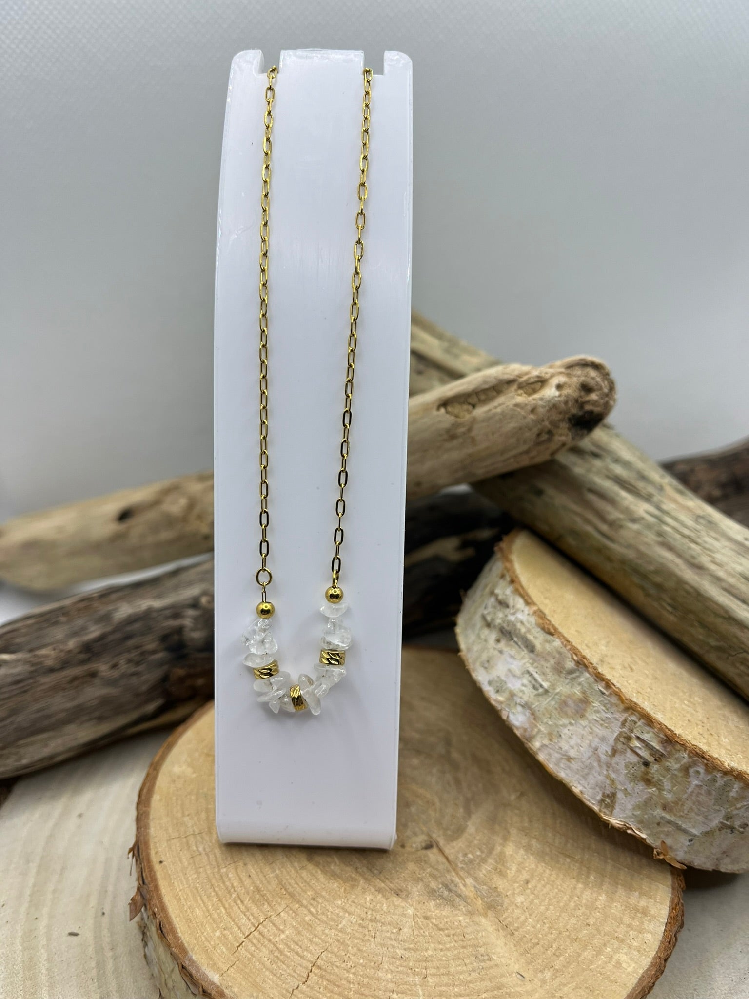 Collier chaine fine en Acier Inoxydable Doré orné de Pierres Naturelles Cristal