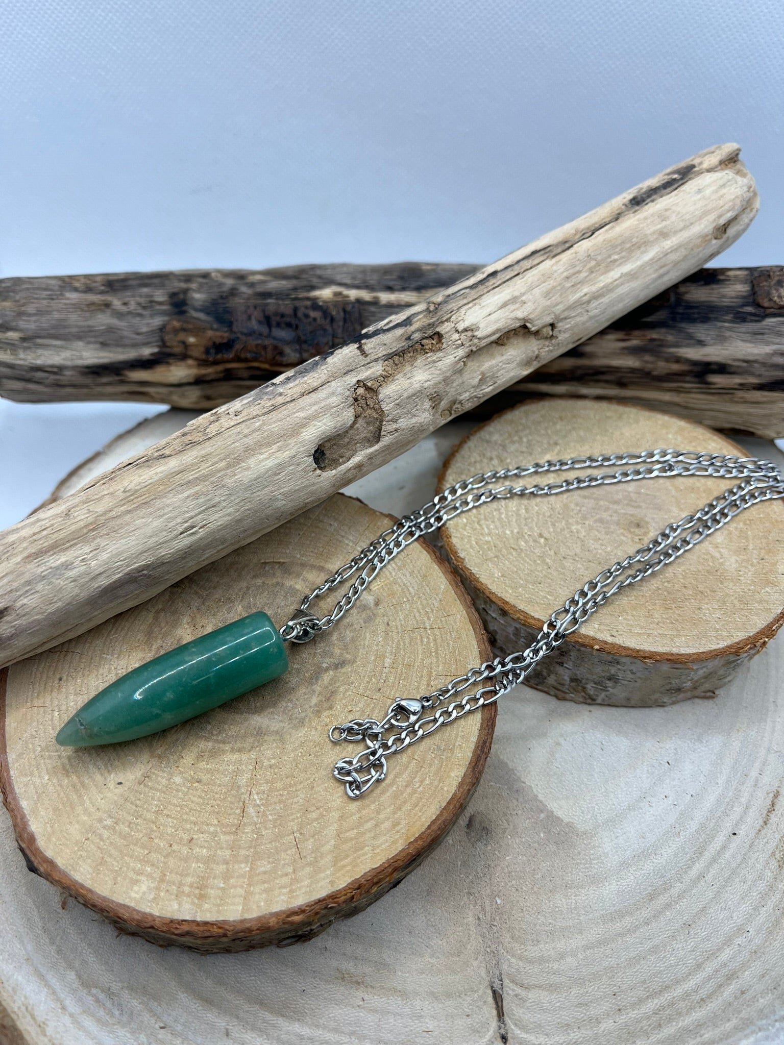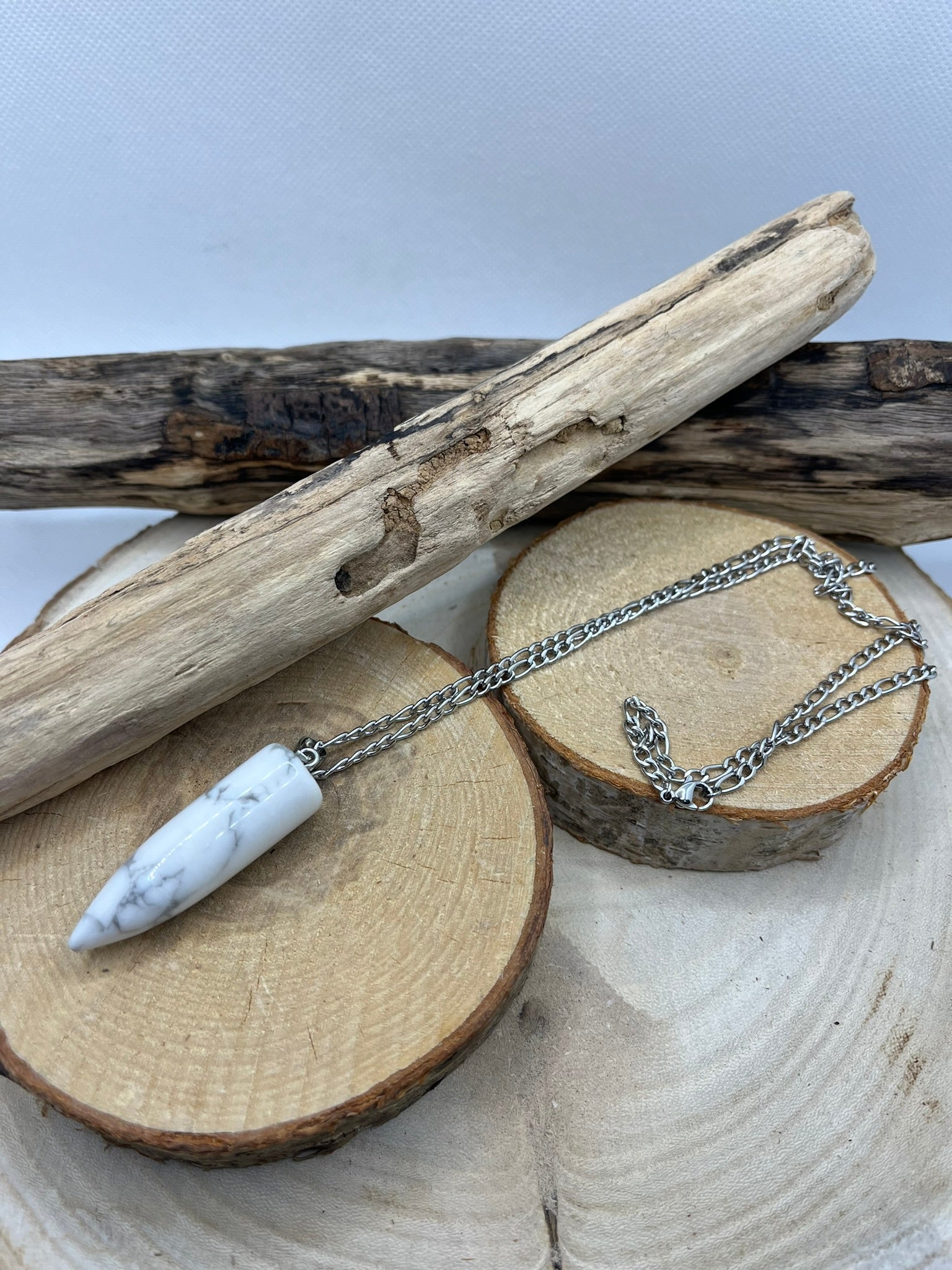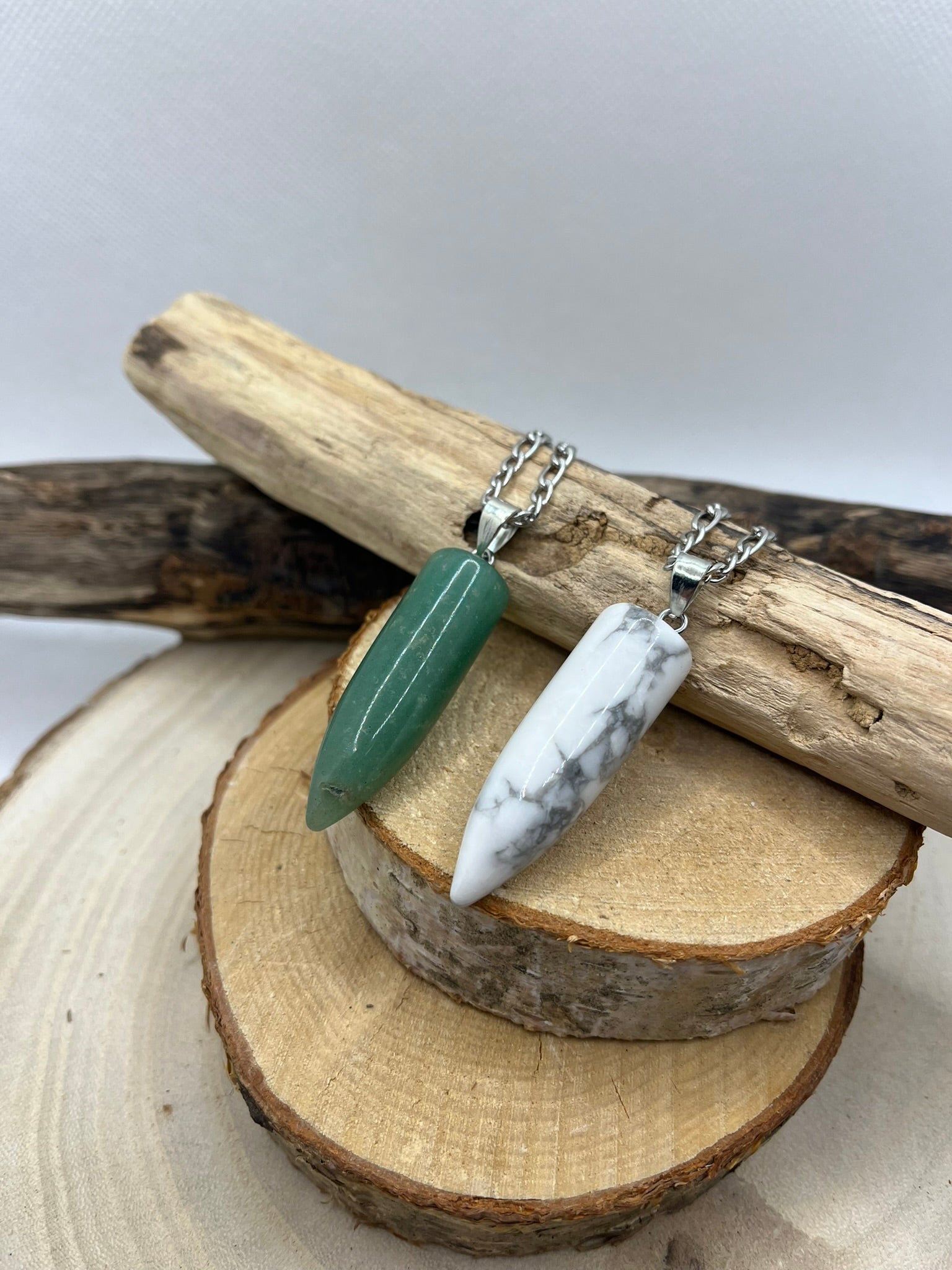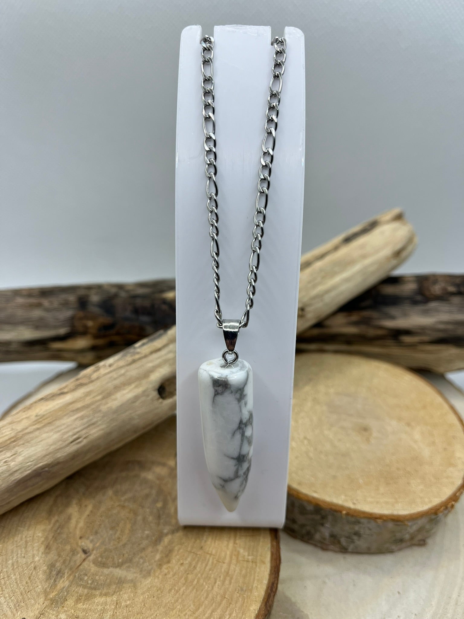 Collier Chaine Maillon en Acier inoxydable Argenté - Pendentif en Pierre Naturelle de Howlite et d'aventurine