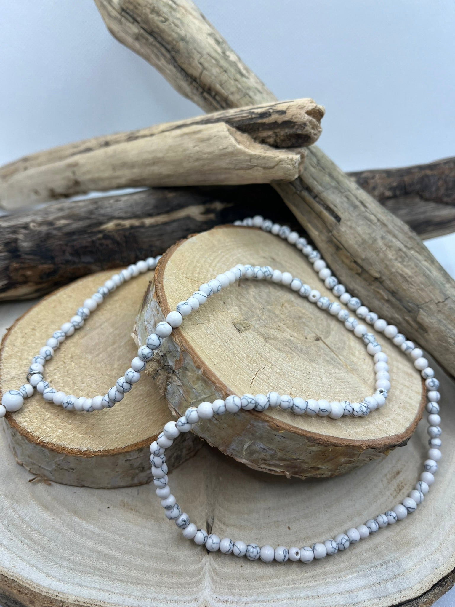 Découvrez le collier en Howlite qui vous procurera calme et sérénité! La pierre fera office d'antidote contre les angoisses nocturnes et les insomnies. Le fil élastique ajoute une touche de confort et d'élégance à votre look. Offrez-vous ce bijou chic et naturel!
