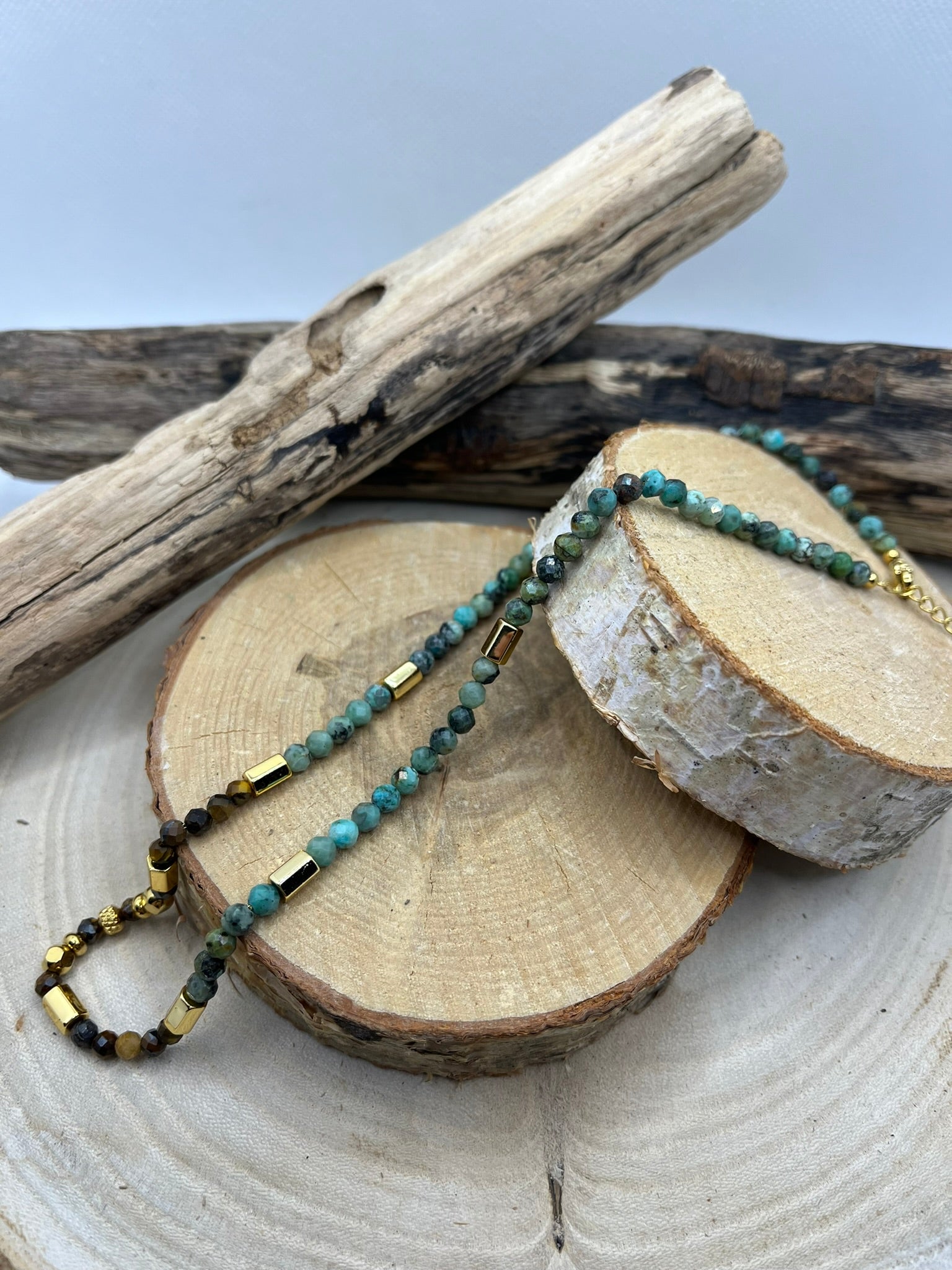 Collier en Pierres Naturelles Oeil de Tigre et Turquoise Afrique