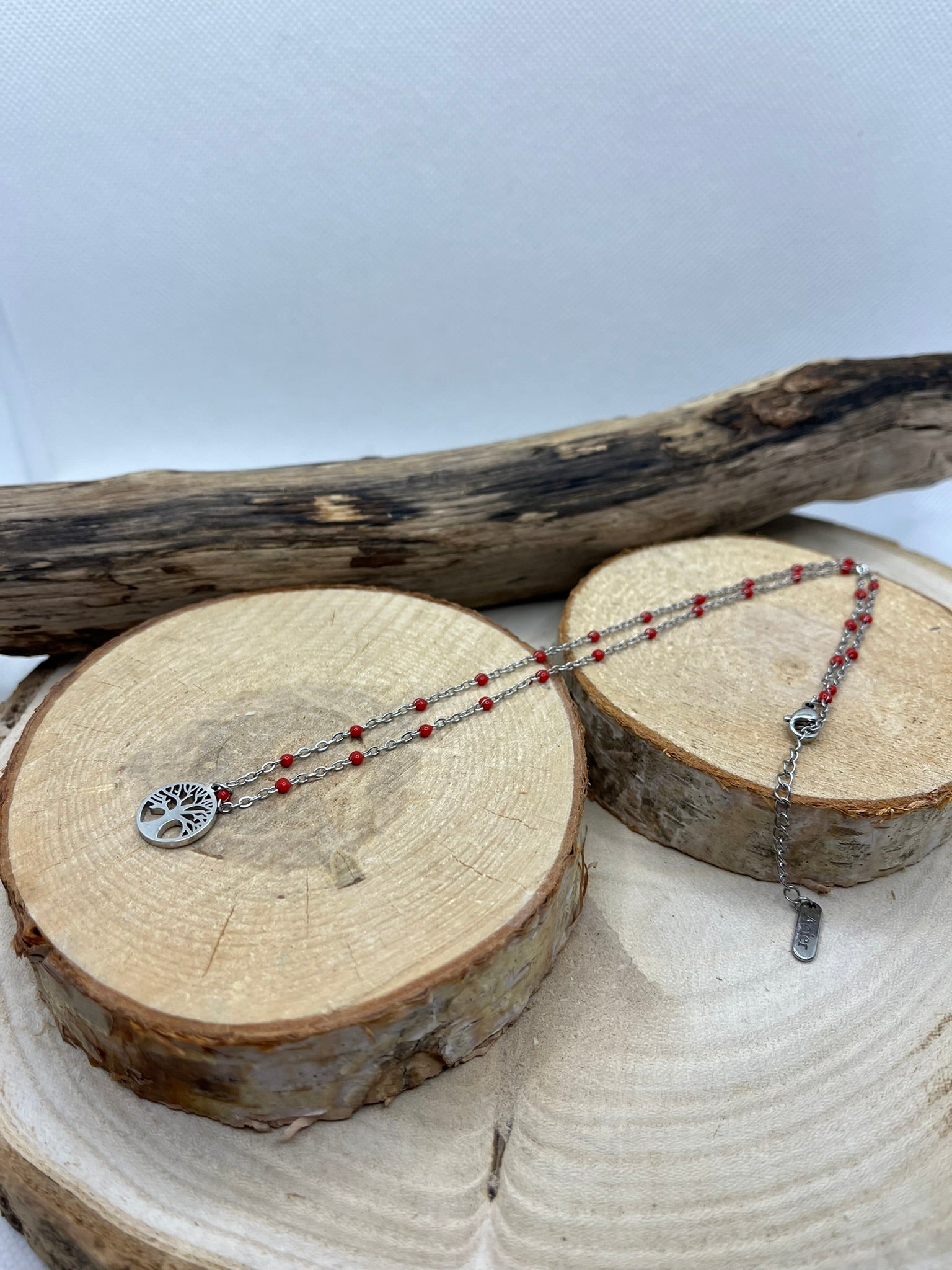 Collier Femme Chaine fine avec Pendentif Arbre de vie - Acier Inoxydable - Argenté