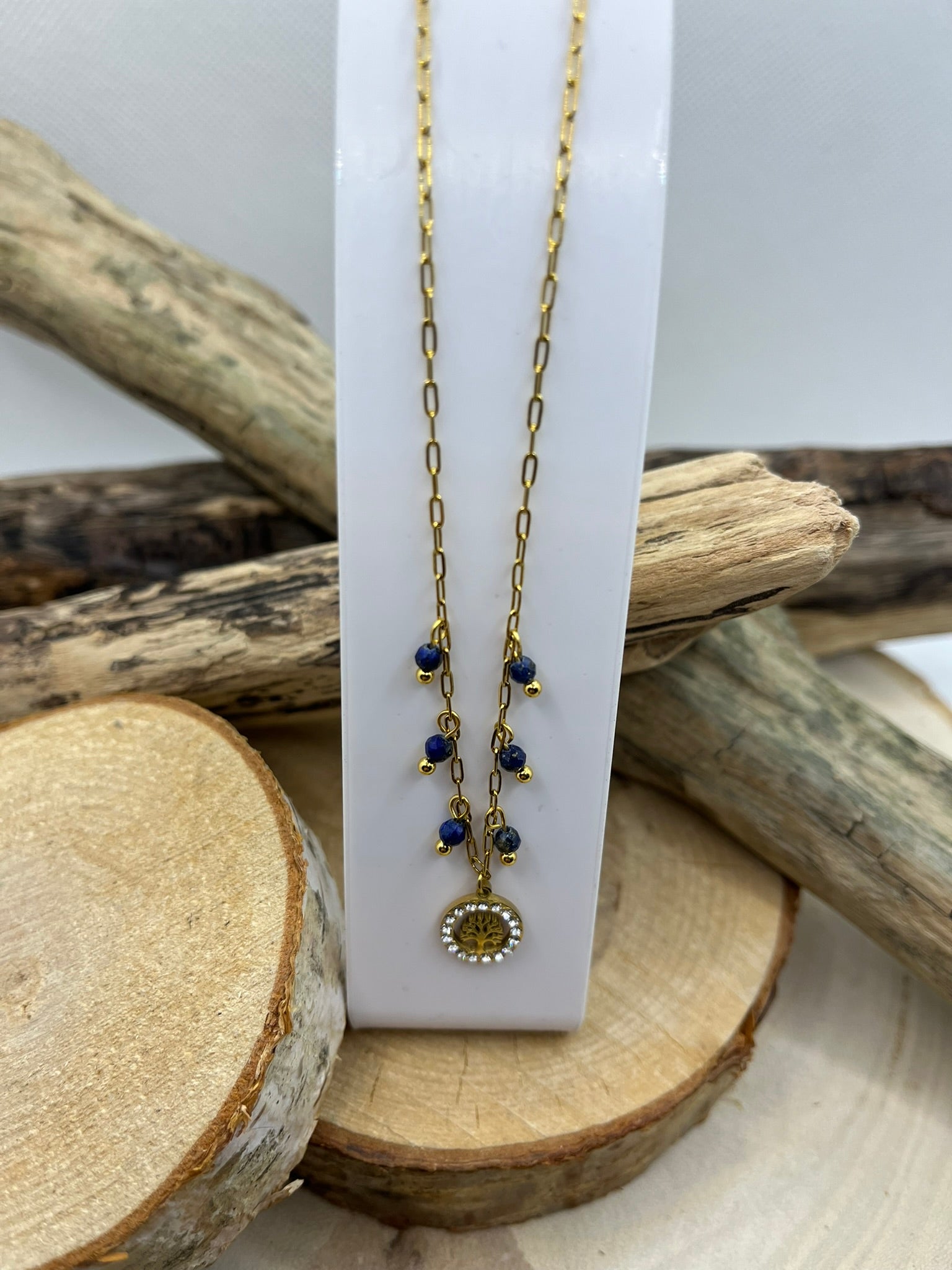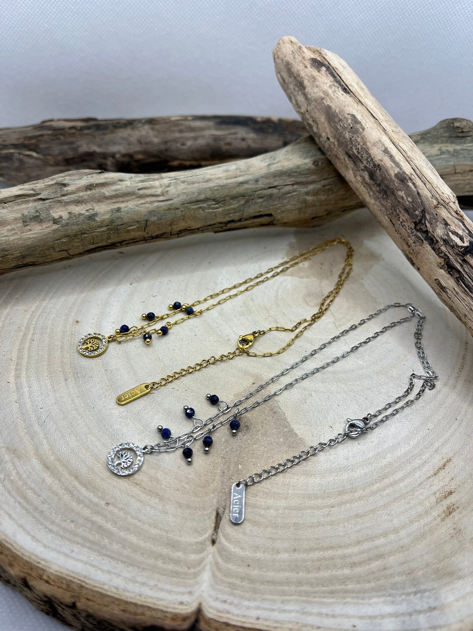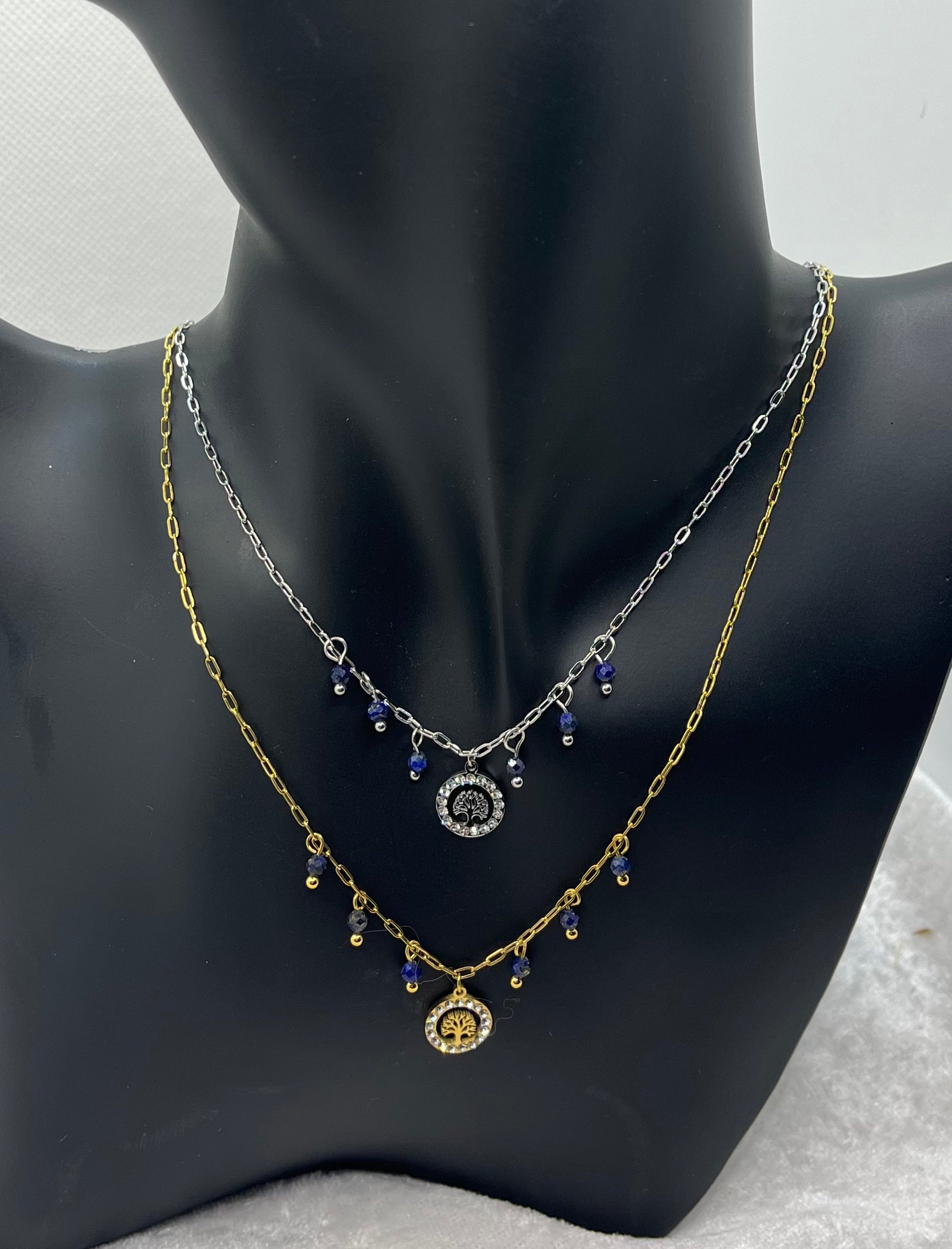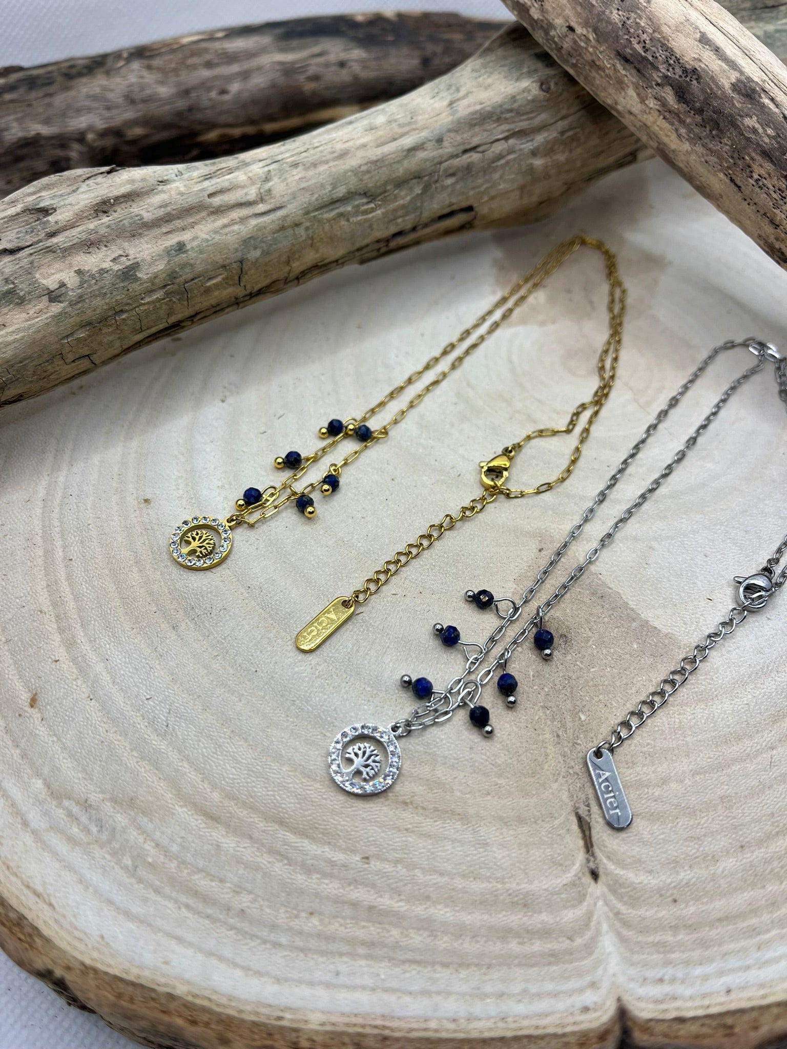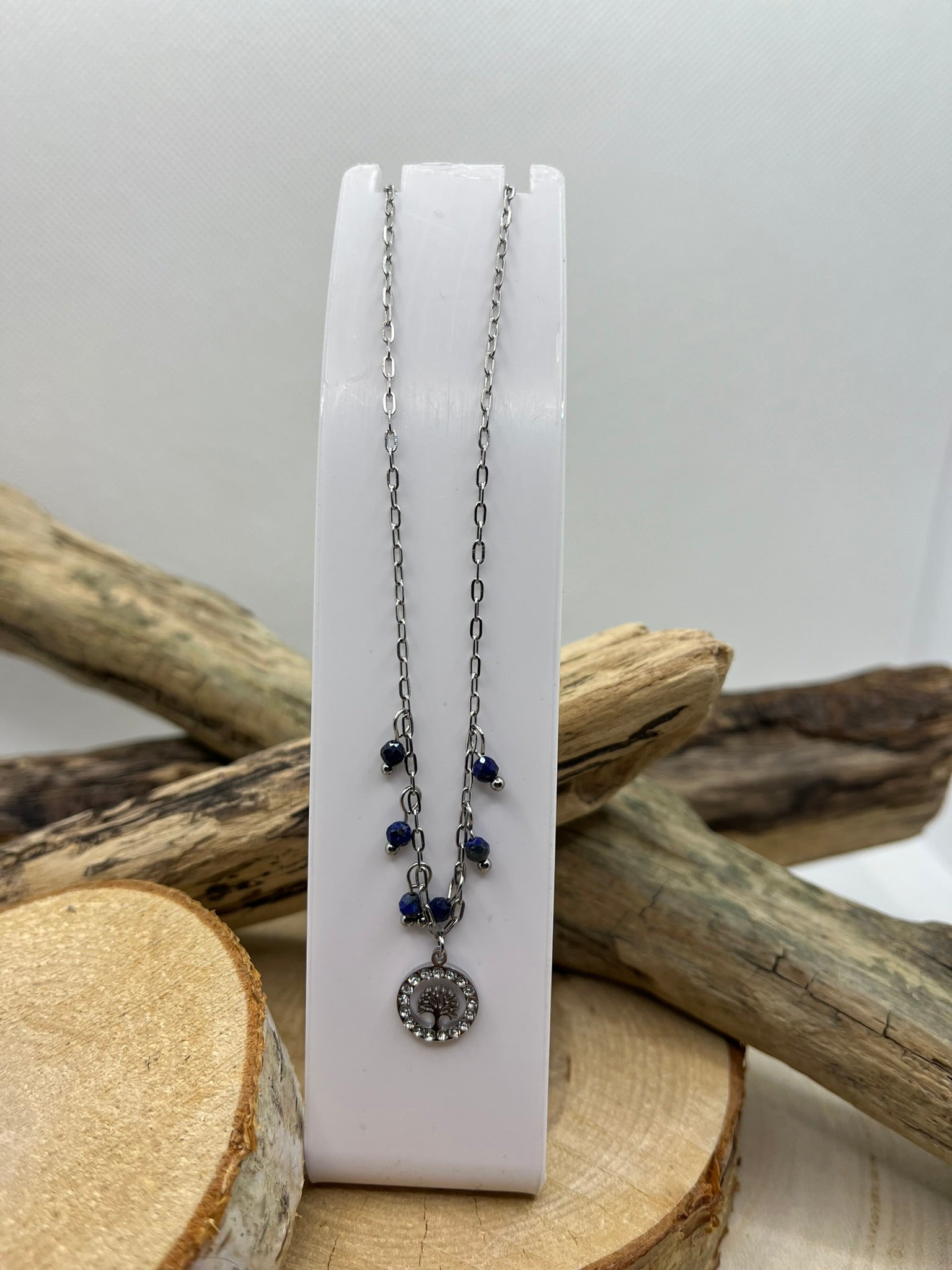 - Style : 1 Chaine fine Pendentif Arbre de vie et perles bleu