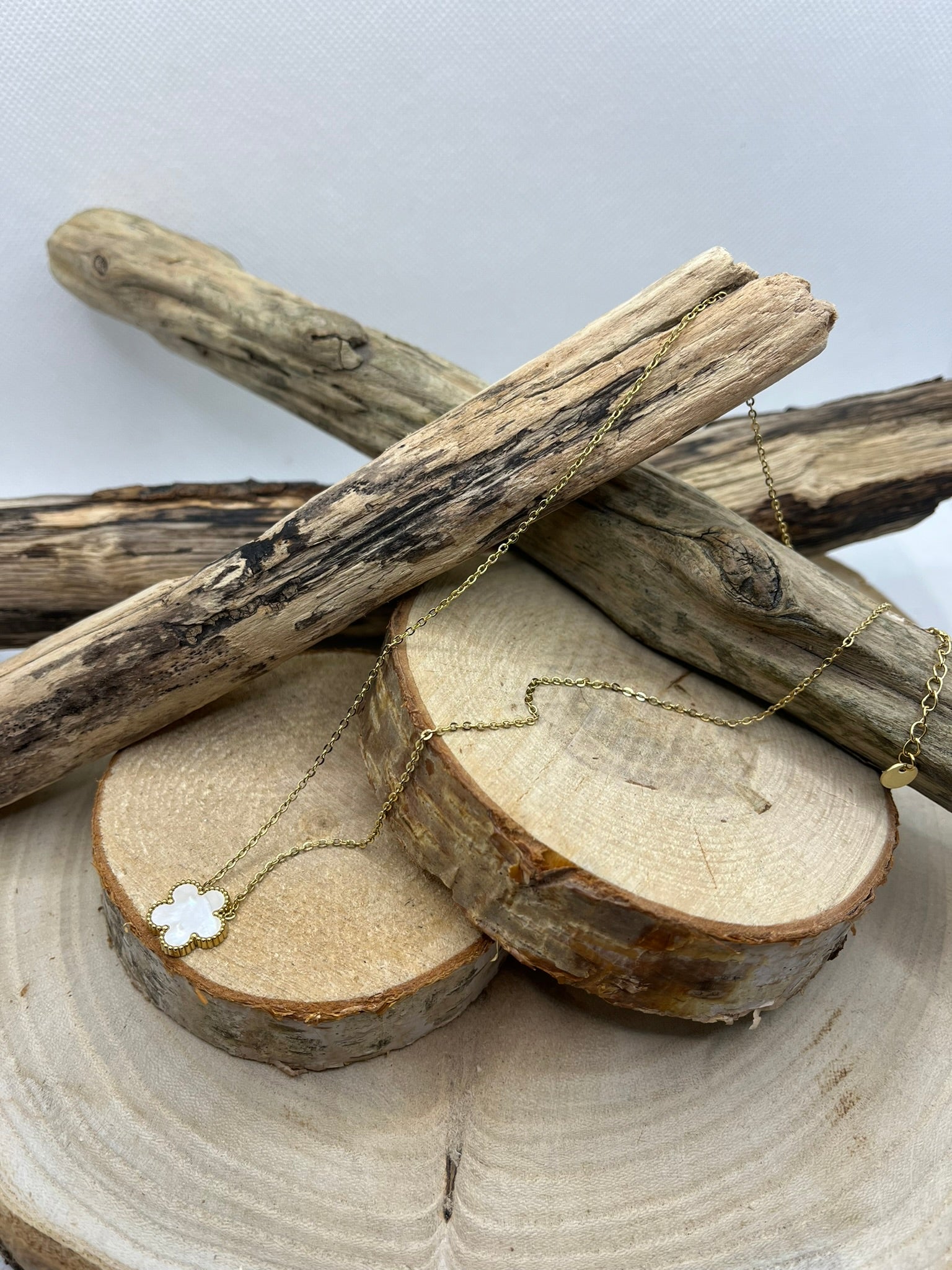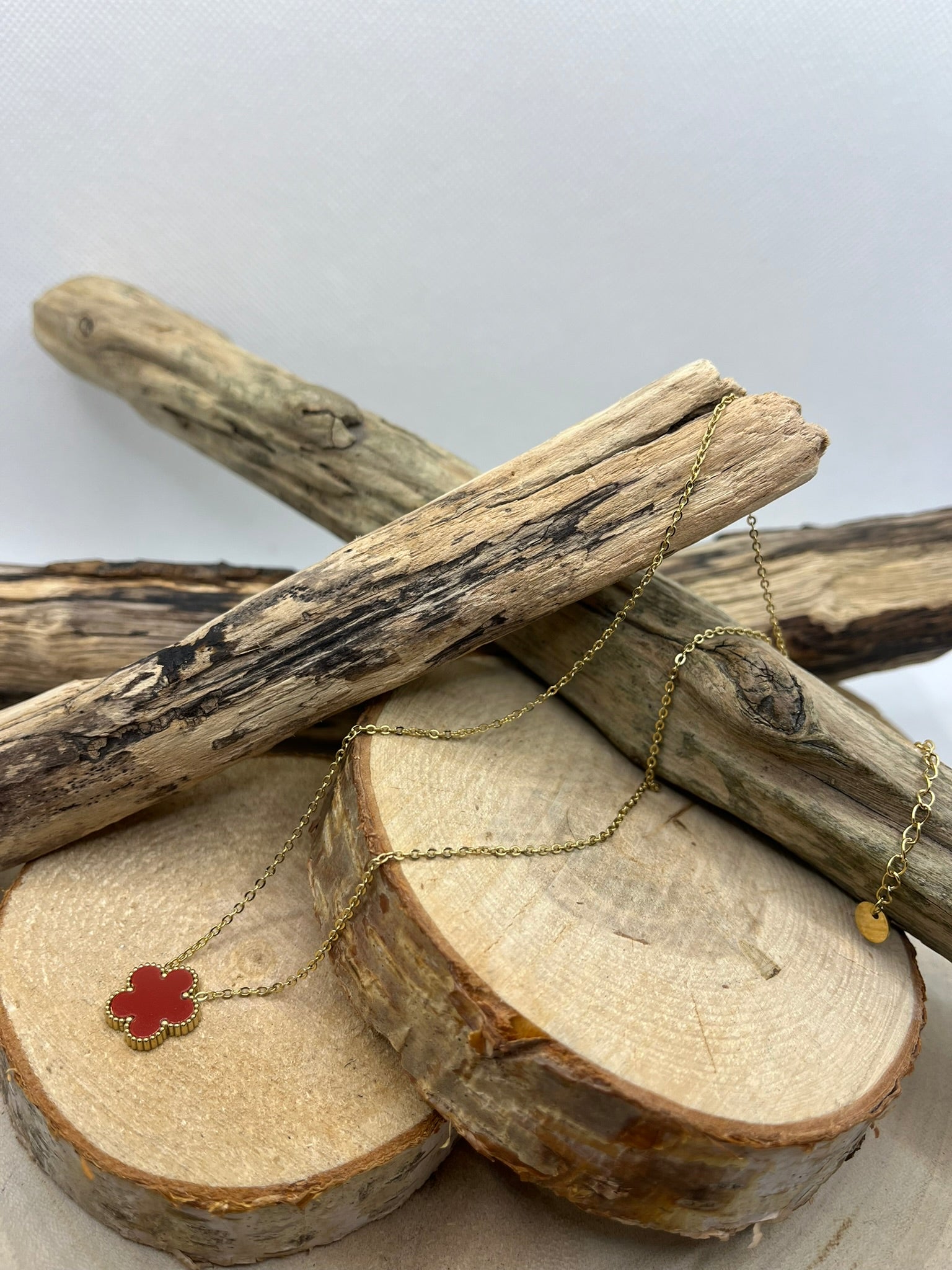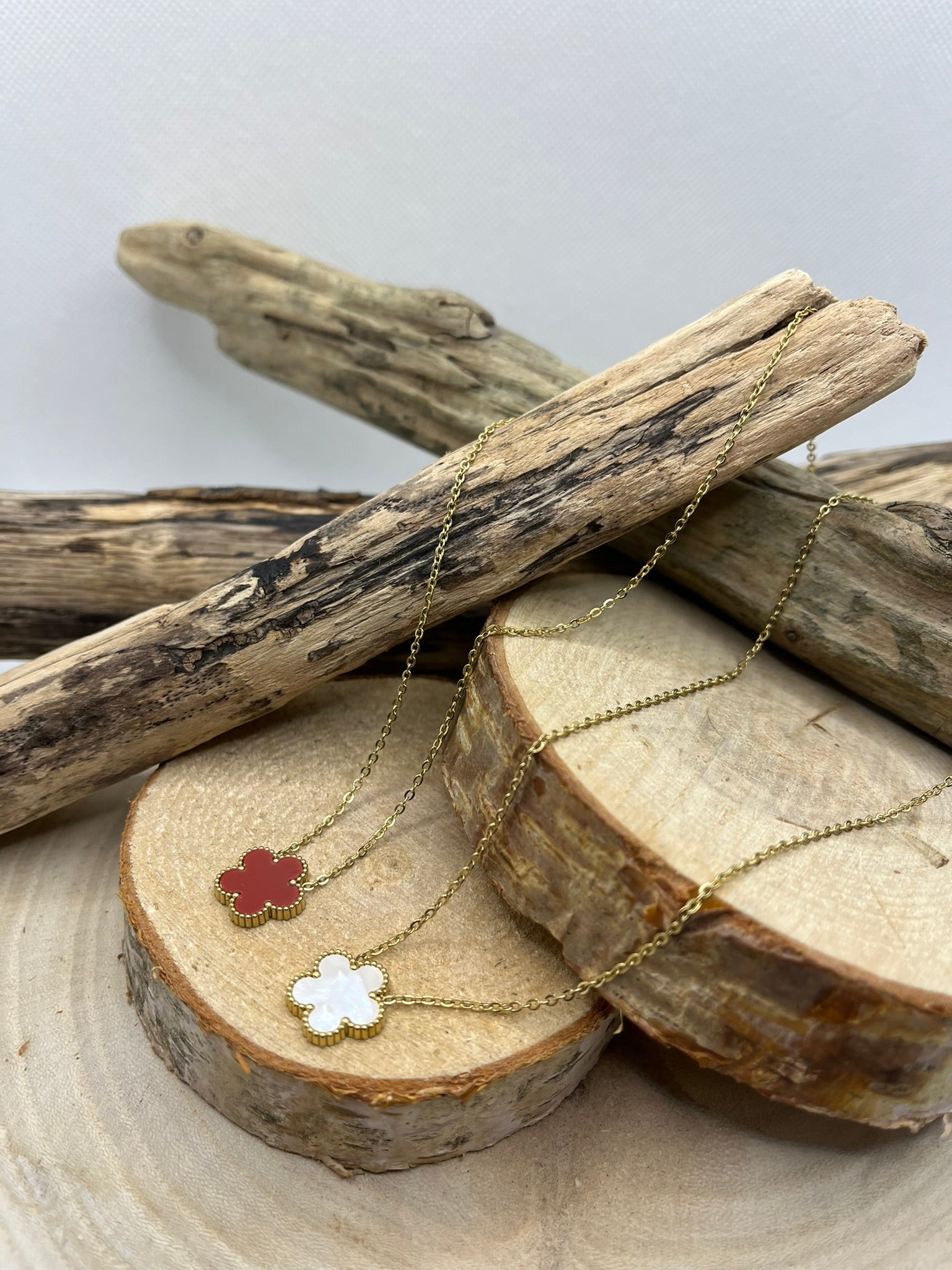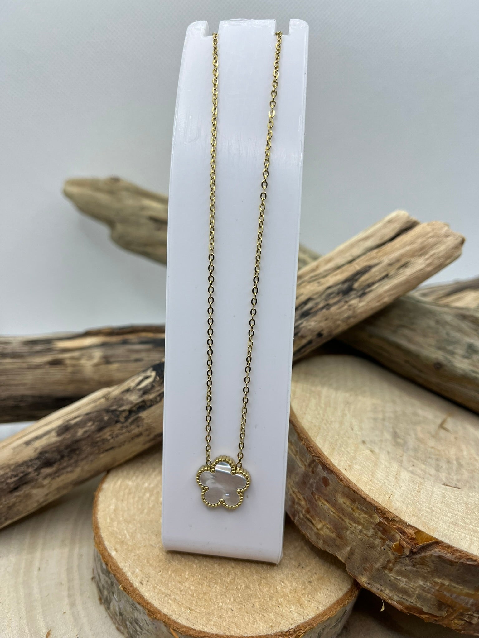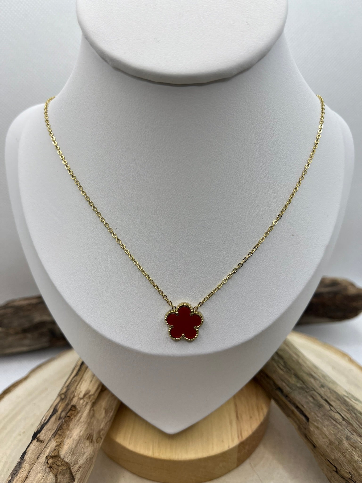 Collier Femme Chaine fine Pendentif fleur nacré de couleur rouge ou Blanc - Acier inoxydable doré