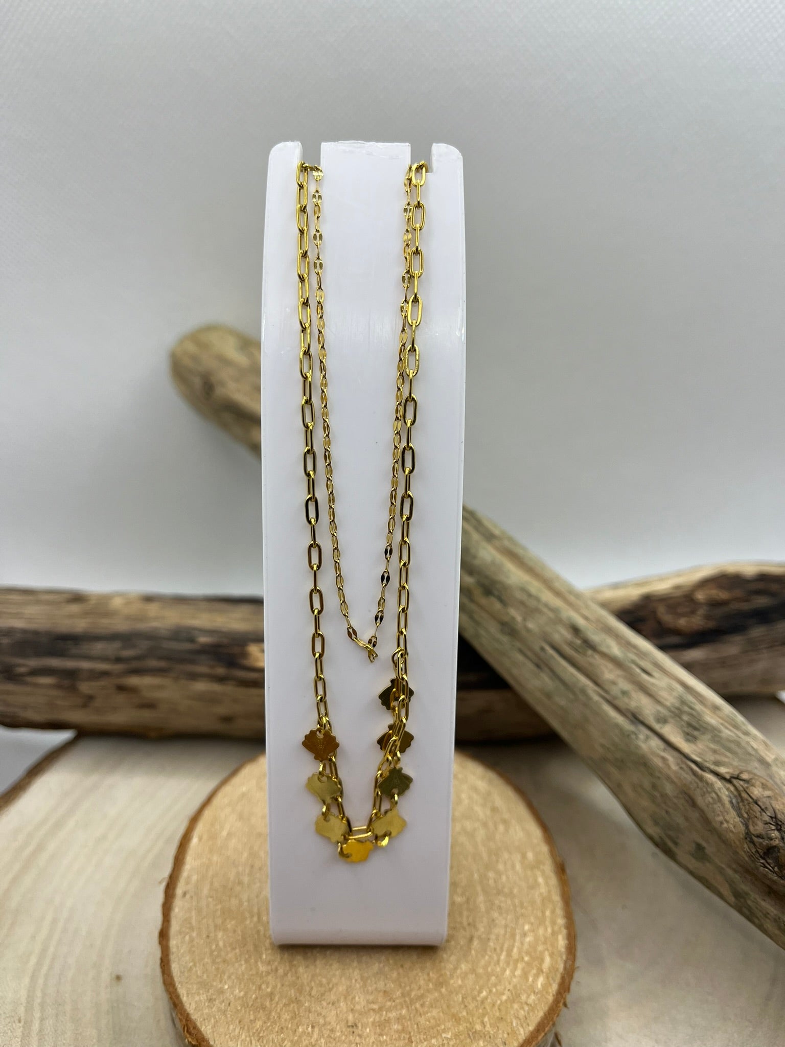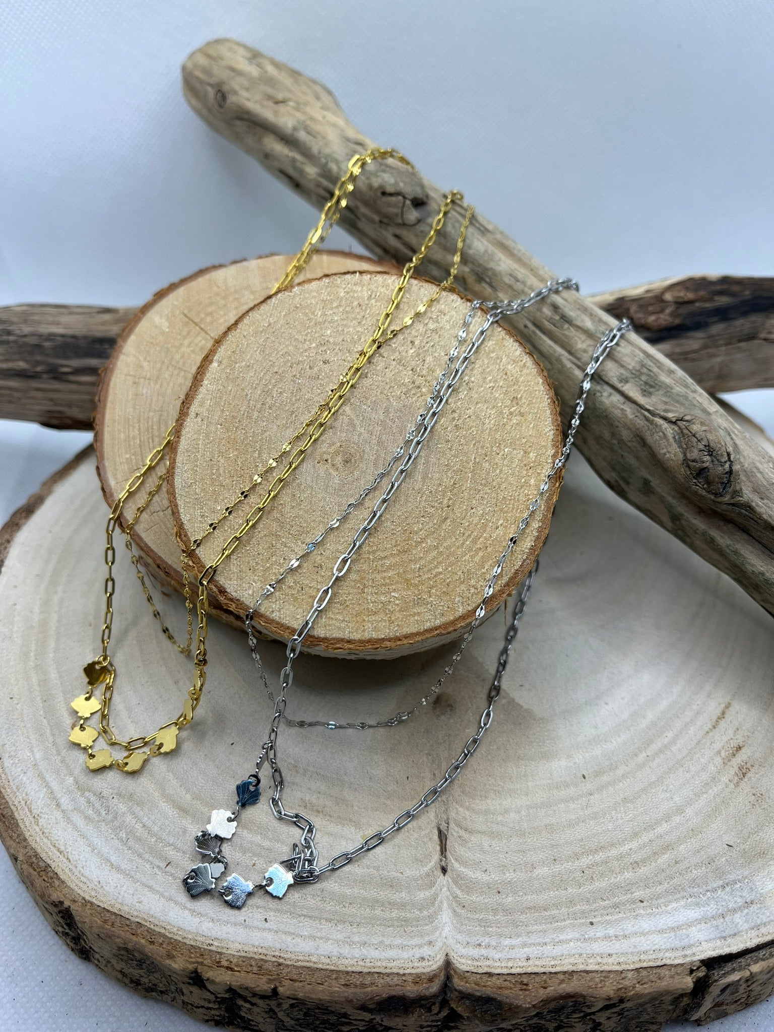 Collier Femme Chic sur 2 chaines - Acier Inoxydable - Doré ou en Argenté