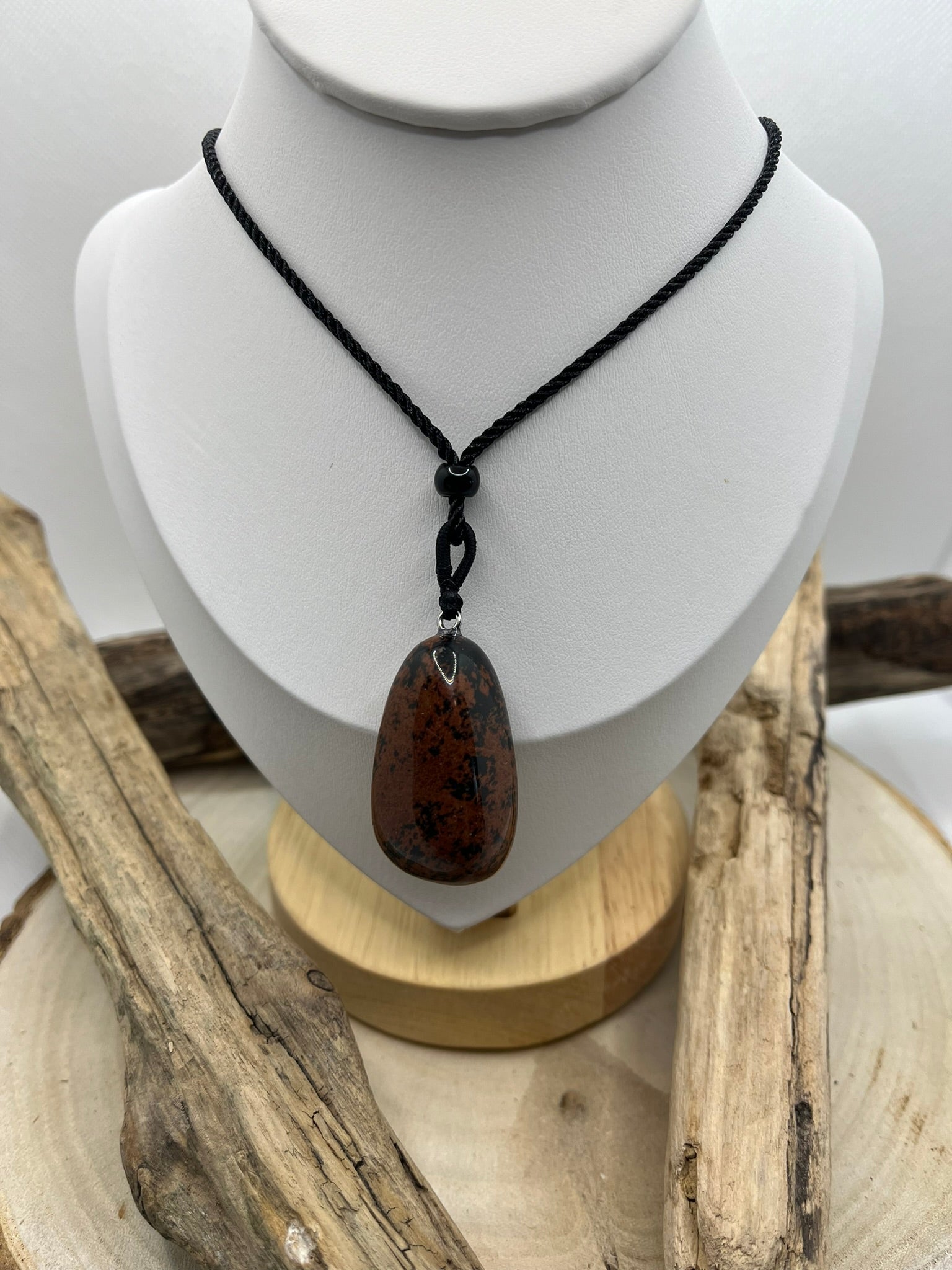 Collier sur Cordon noir réglable - Avec Pendentif en Pierre Naturelle Oeil de Taureau