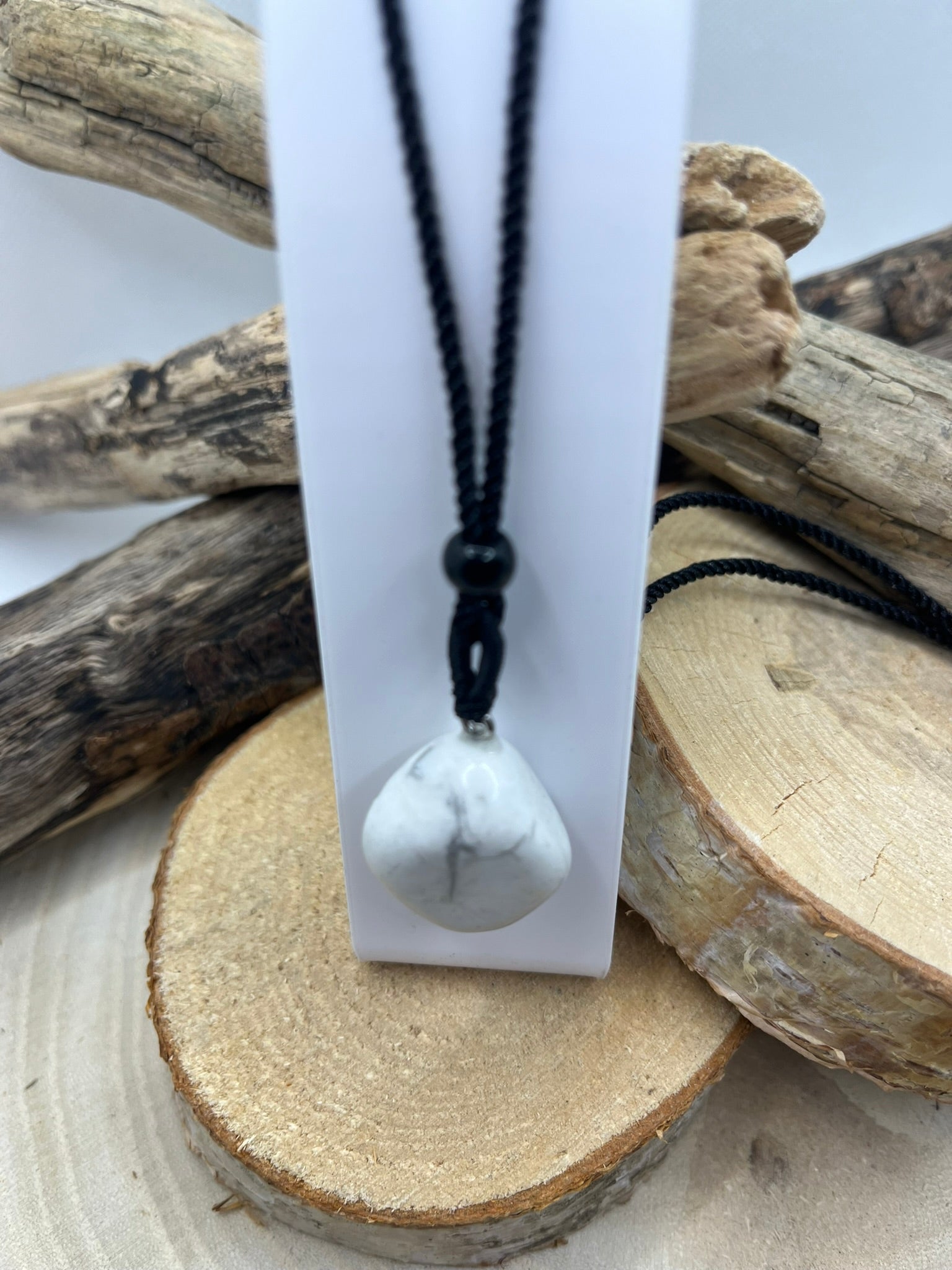 Collier sur cordon noir réglable - Pendentif en pierre Naturelle Howlite
