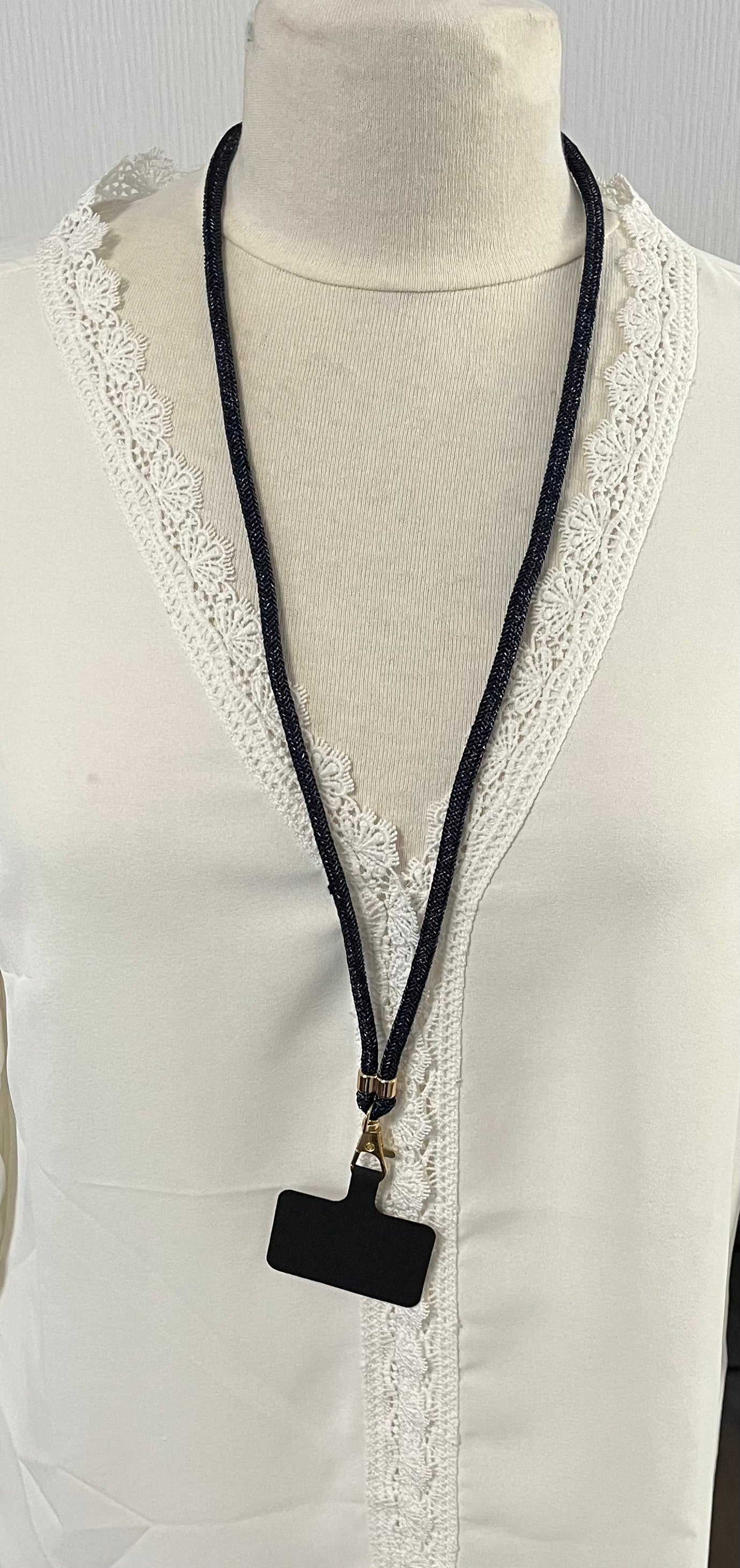 Cordon Téléphone Portable Marine Brillant - Réglable avec Patch - Tour de cou