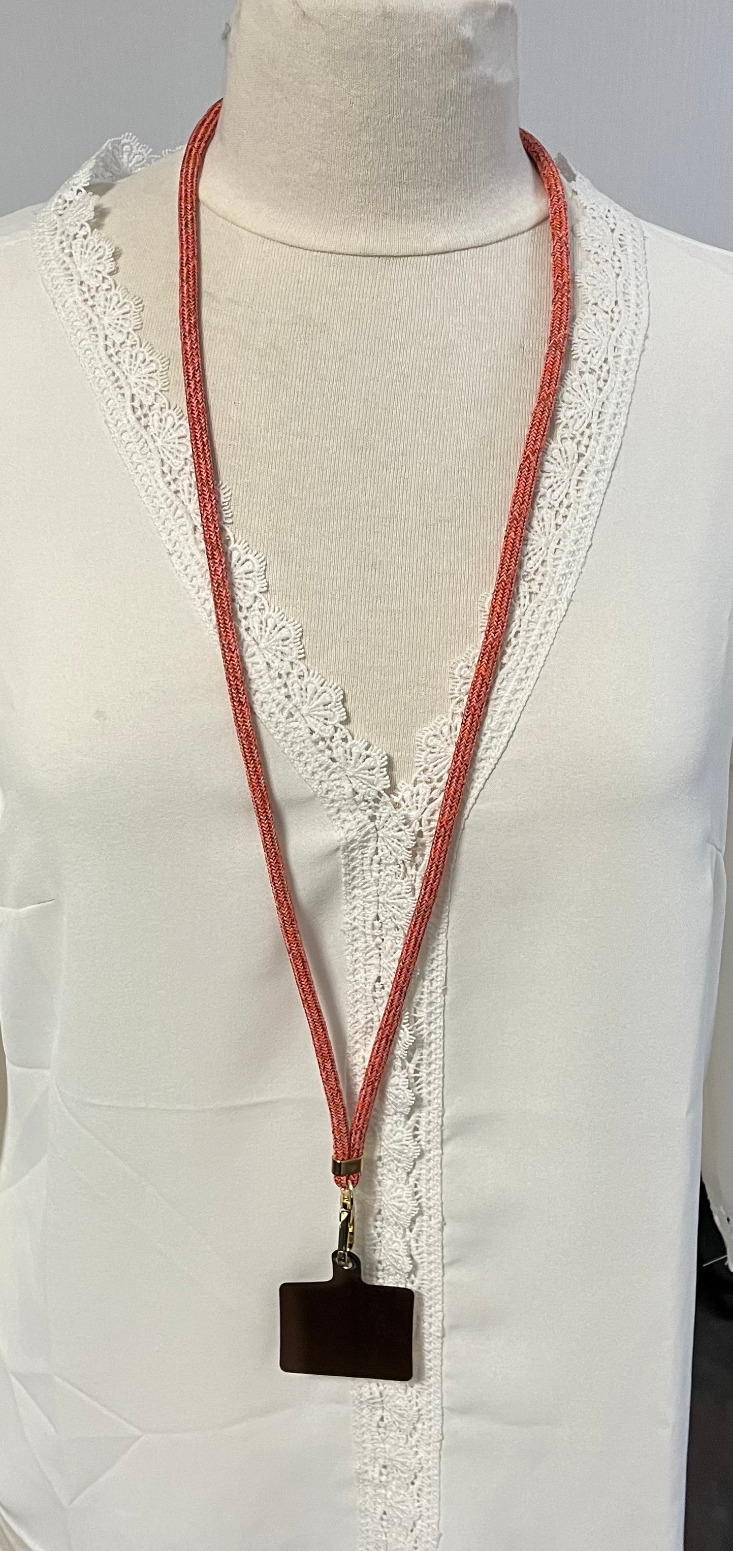 Cordon Téléphone Portable Rose Chiné - Réglable avec Patch - Tour de cou