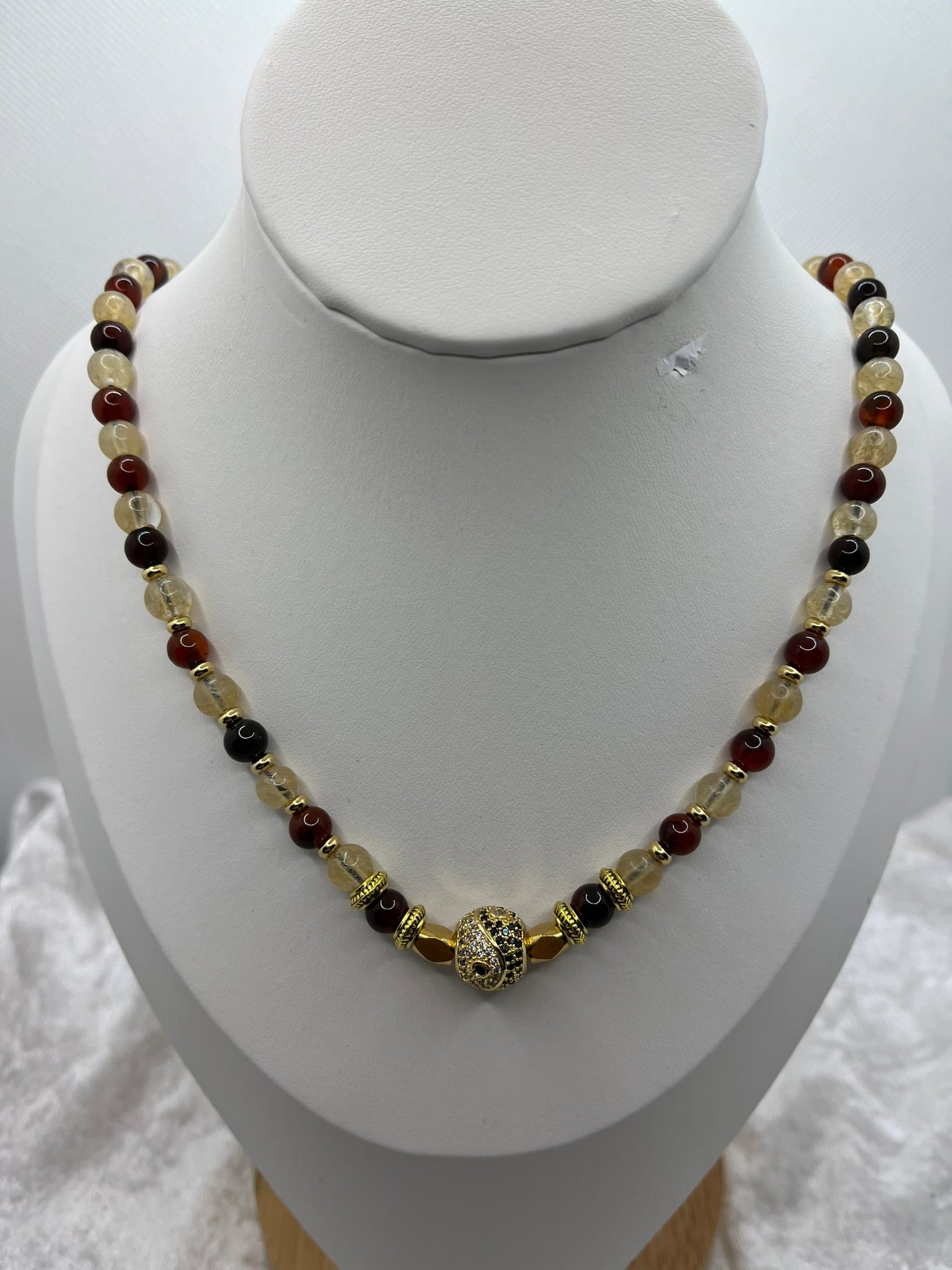 Ensemble Collier + Bracelet en Pierres Naturelles - Cornaline, Citrine - Fait Main