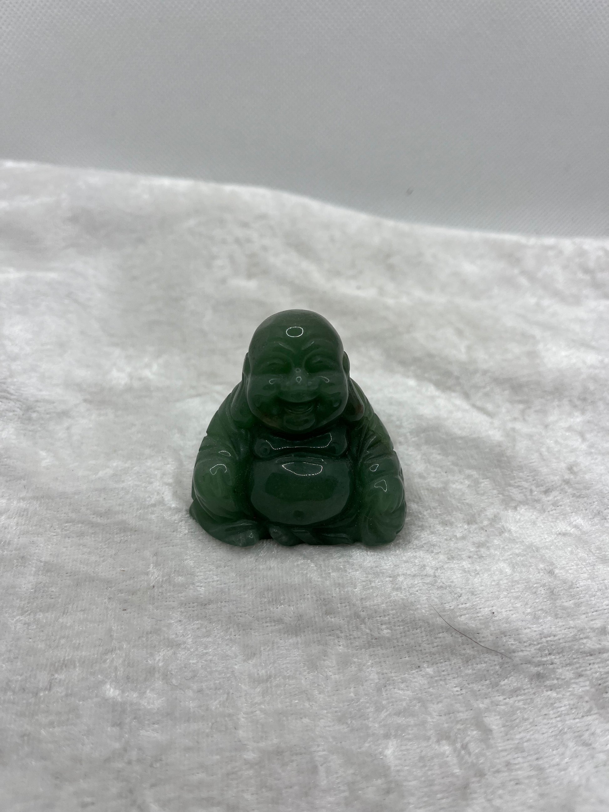 Statuette Bouddha rieur en Pierre Naturelle - Aventurine verte -Oeil de Taureau - Granite vert